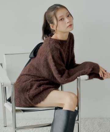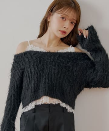 【REVIVAL/WEB限定】襟取り外しロゴジャガードショートニット
