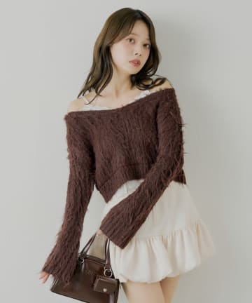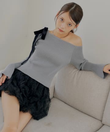 【SALON by Chico】ギャザーバルーンオフショルブラウス