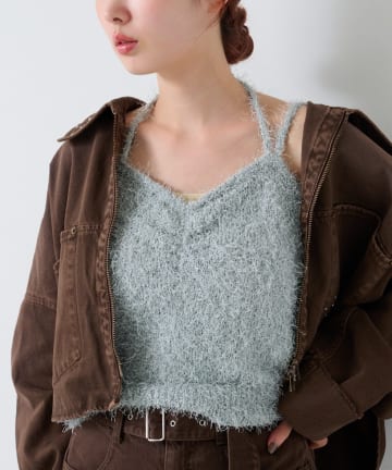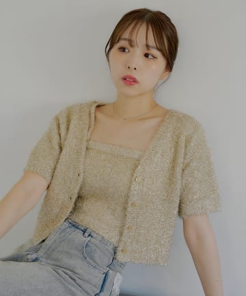 【Chico】ラメシャギーニットカーディガン+ベアキャミセット