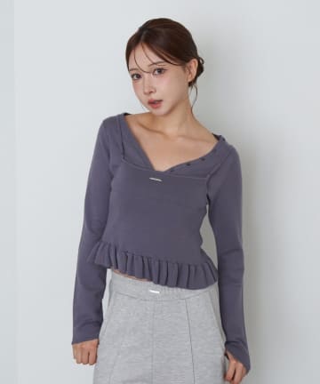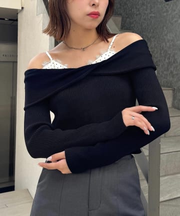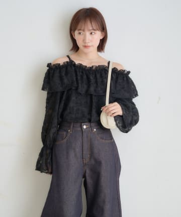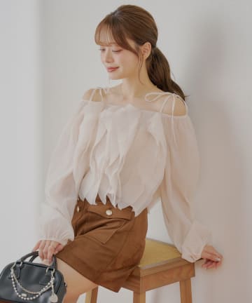【mystic】[mline]シャギーフリル オフショルブラウス