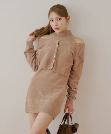 【Chico】ベロアモールノースリワンピース+カーディガンセット