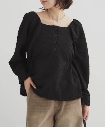 【WHO'S WHO gallery】2WAYオフショルダーパフスリーブブラウス