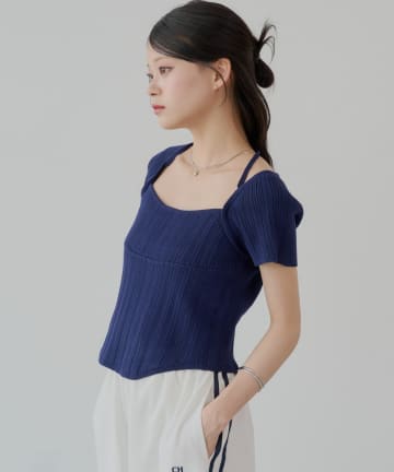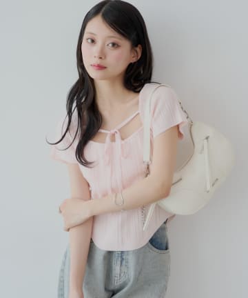 【Chico】紐デザインカップスクエアフレンチニット