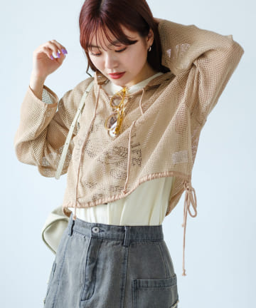 【Kastane】メッシュレースアップパーカー
