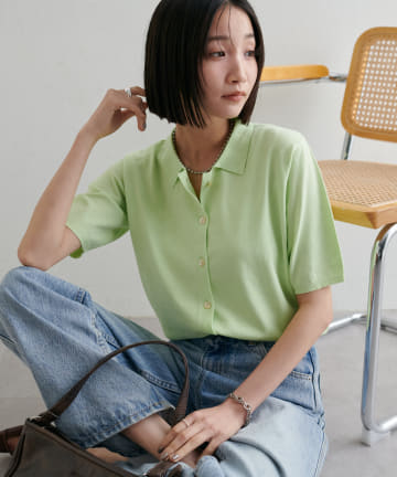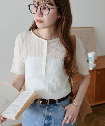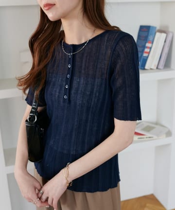 【Discoat】シアーニットリブヘンリー5分袖