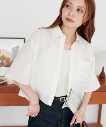 【Discoat】シアー半袖クロップドシャツ
