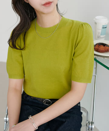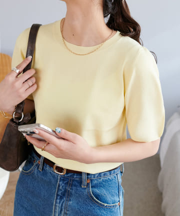 【Discoat】ミニブークレ肩ギャザー半袖プルオーバー
