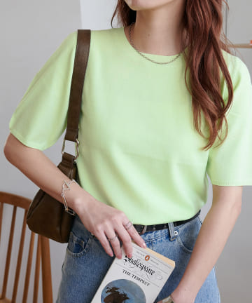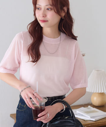 【SHENERY】シアー5分袖ニット