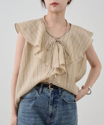 【SHENERY】フリルノースリーブブラウス