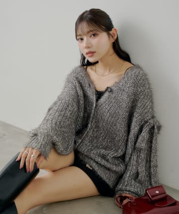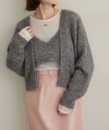 【Chico】ラメシャギーニットカーディガン+ベアキャミセット