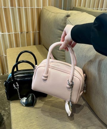 【小ぶりなサイズ感が可愛い♡】ハートチャーム付きボウリングバッグ