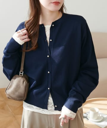【肌が喜ぶ質感♪】UVサラモチメタル釦クルーカーディガン