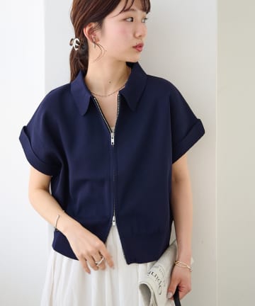 ライトスポンディッシュ衿付Wジップ半袖カーディガン