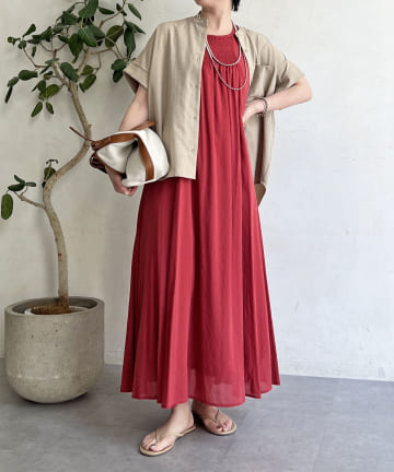麻調2WAYシャーリングワンピース
