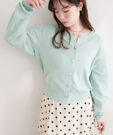 リサイクルポリニュアンス釦カーデ