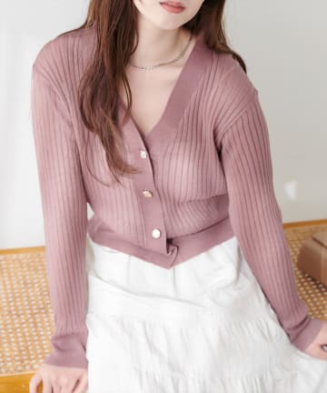 リブシアーニットカーディガン