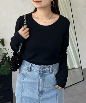 【選べるネックライン】バックメタルリブロンT