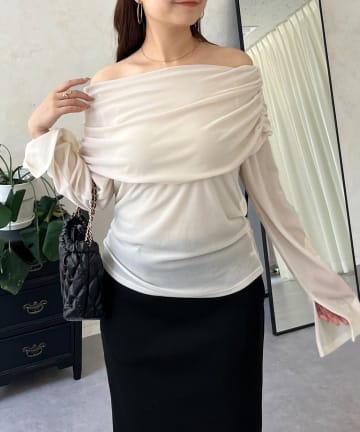 袖スリットシアーベロアオフショルカットソー