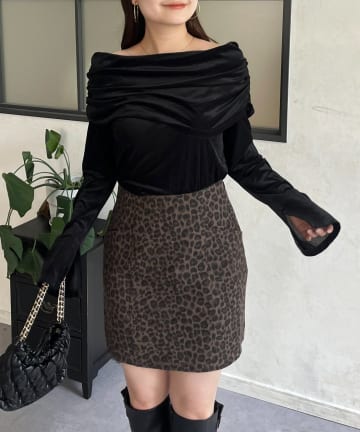 レオパードツイル台形ミニスカート