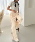 韓国っぽいコーデがお好きな方は、プリーツスカートやタイトスカートなどで合わせるのがオススメ。