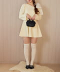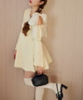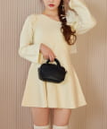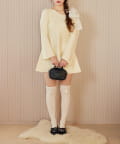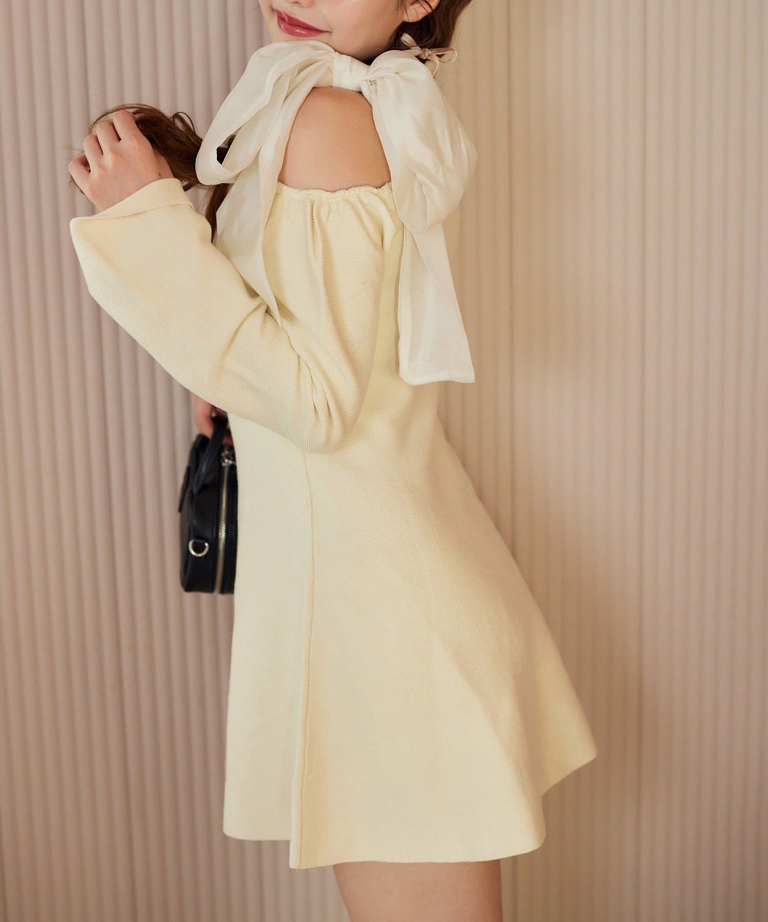 肩の大きなリボンが可愛さを引き立てるニットワンピース