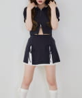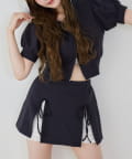 コンパクトなトップスと合わせて、すっきりバランスの取れたコーデに。