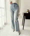 人気のハイウエストデザインに、センターラインを入れ足長効果に。