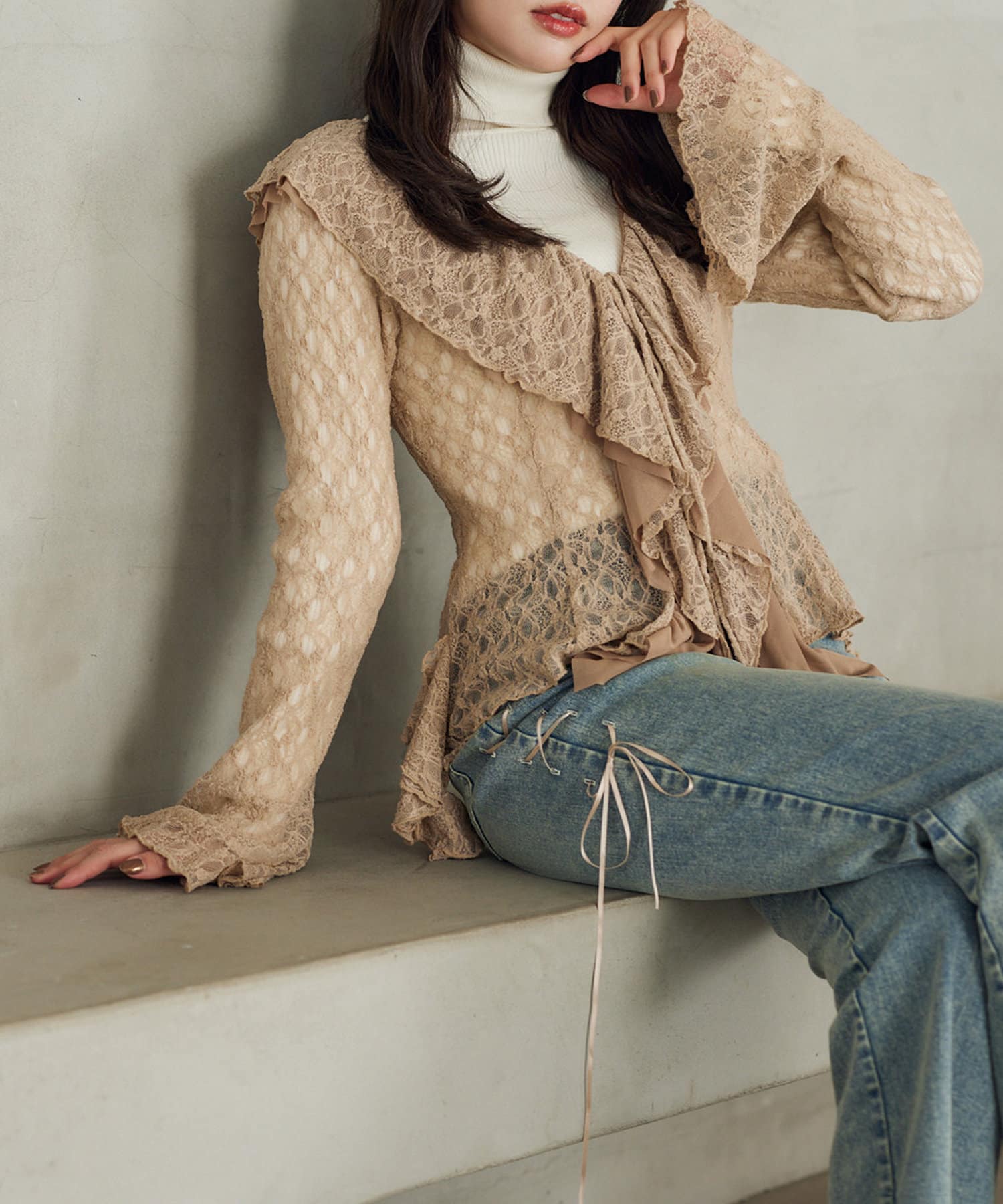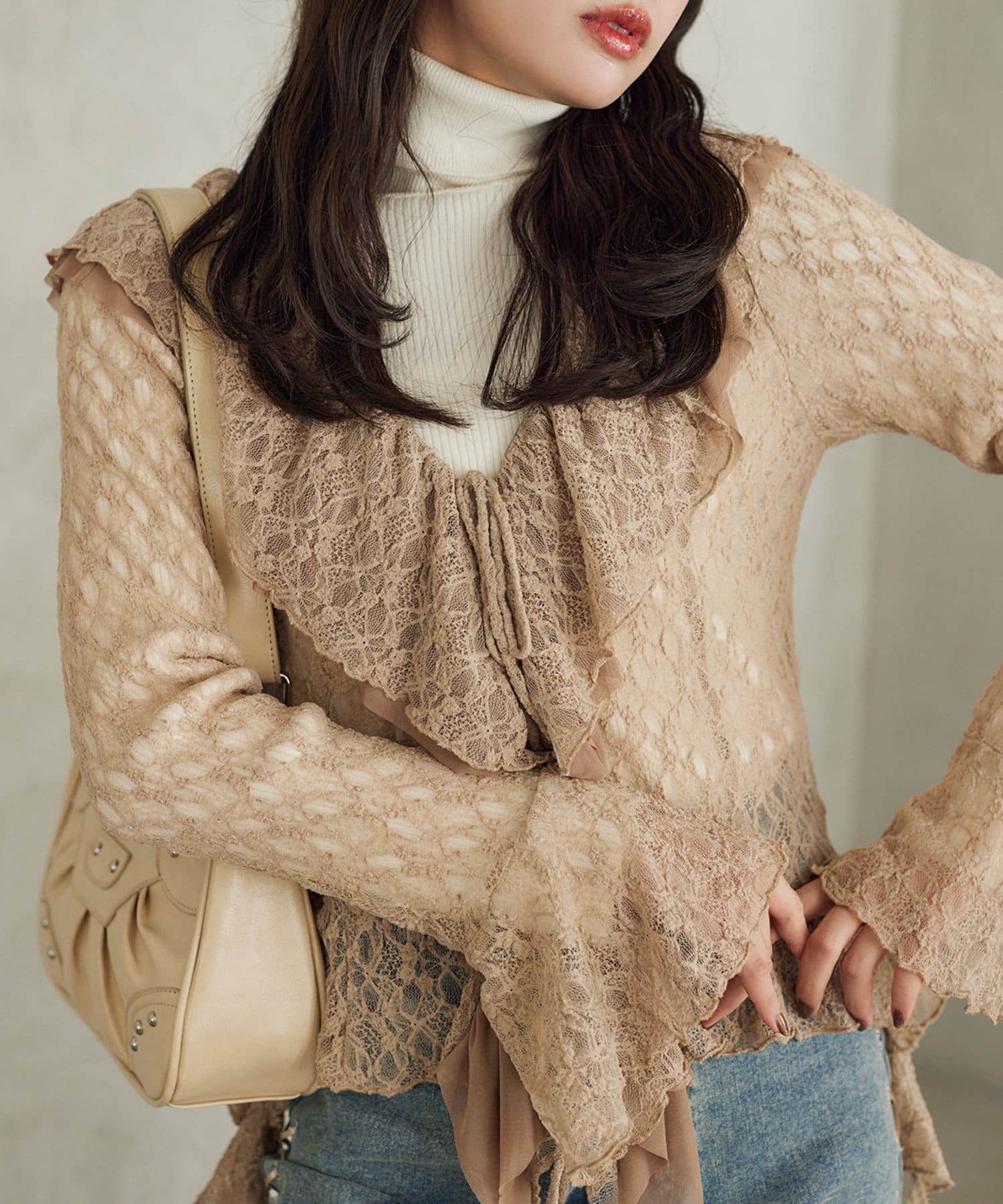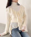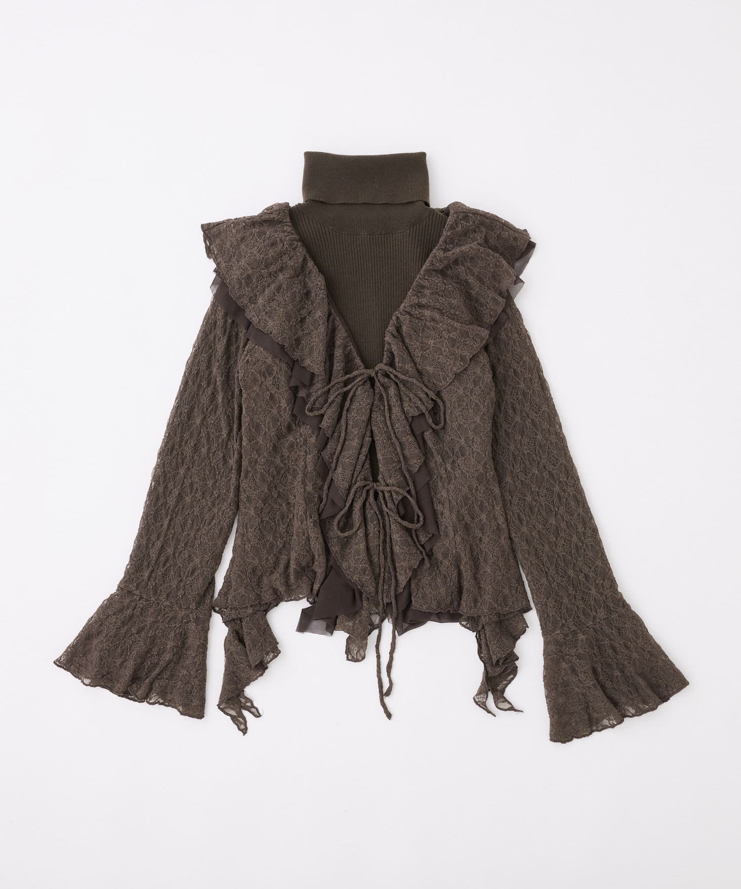 ハイネックニットとレースのトップスがセットになったアンサンブルアイテム