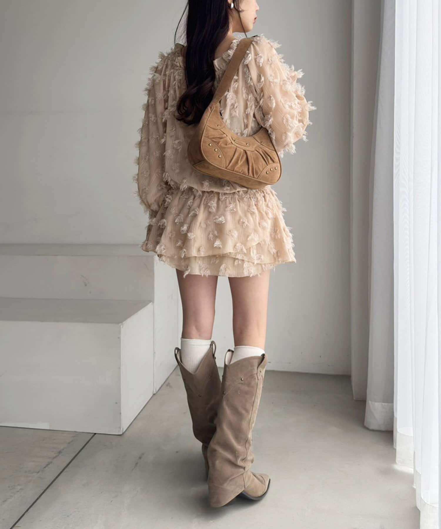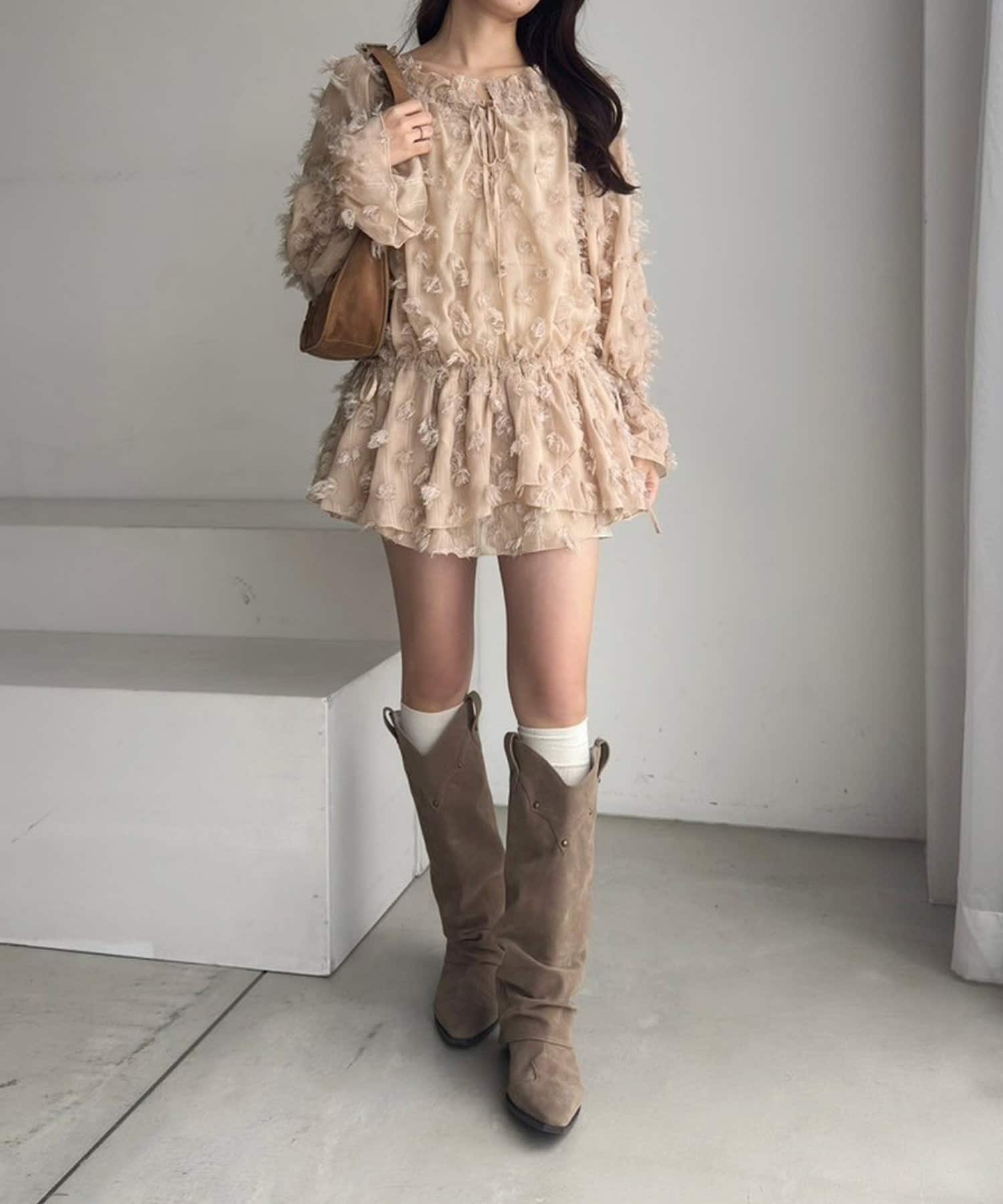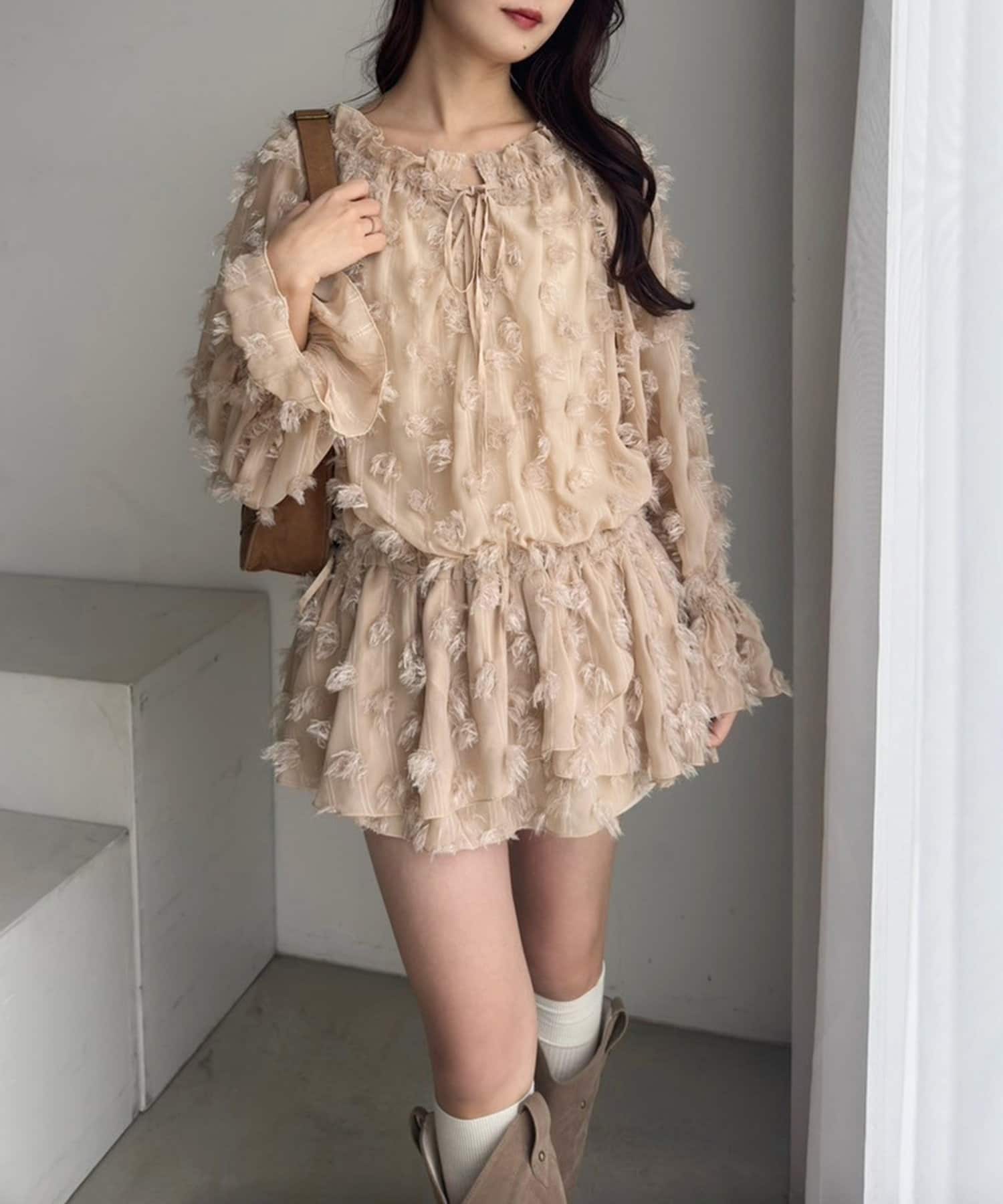 気になるウエスト周りをカバーしつつ、1枚でコーデが華やかになるアイテムです。