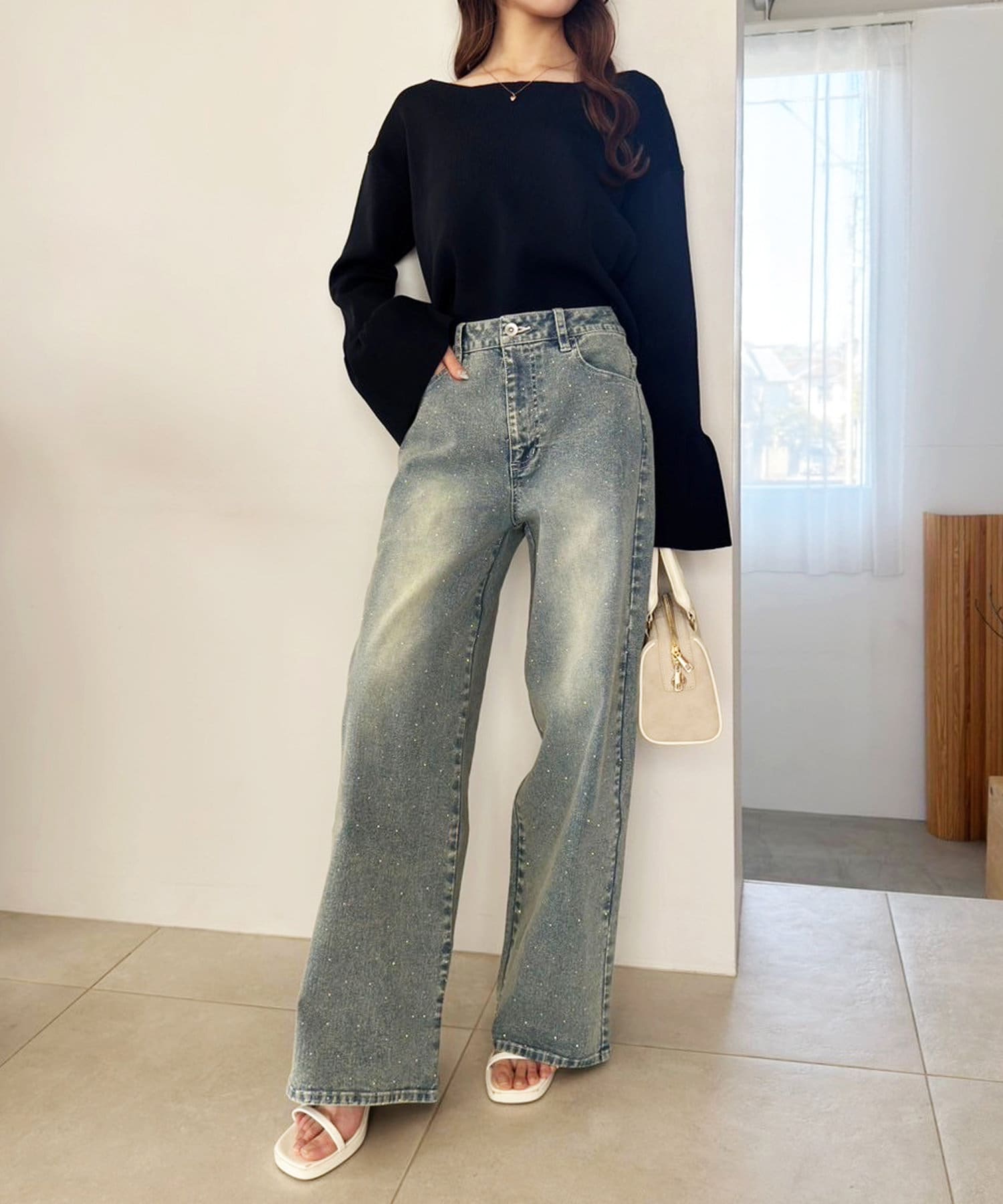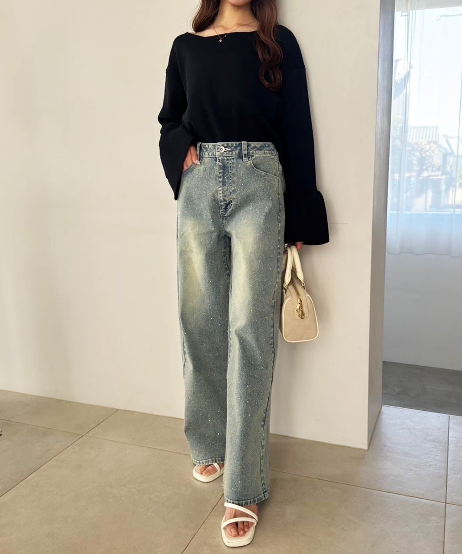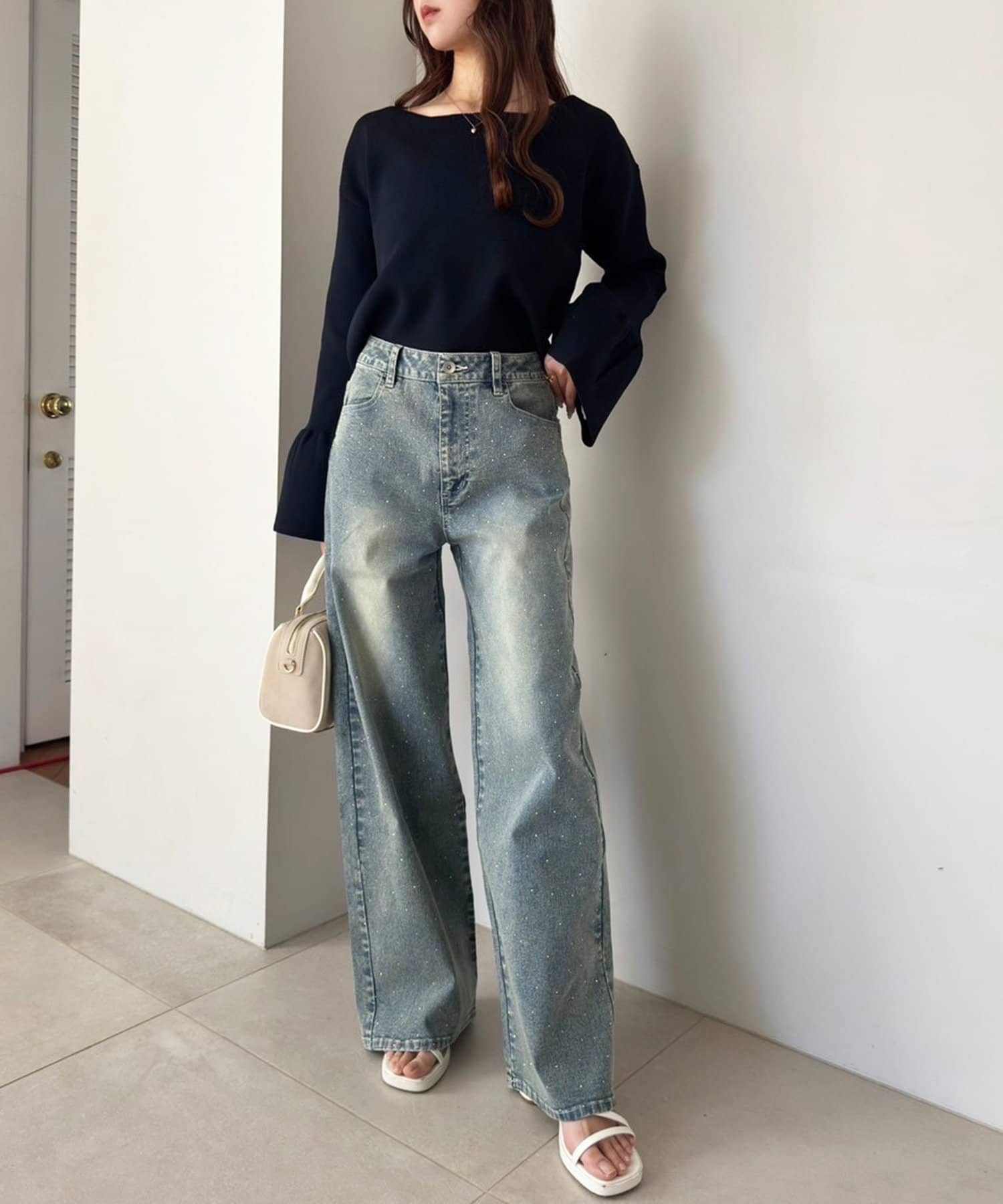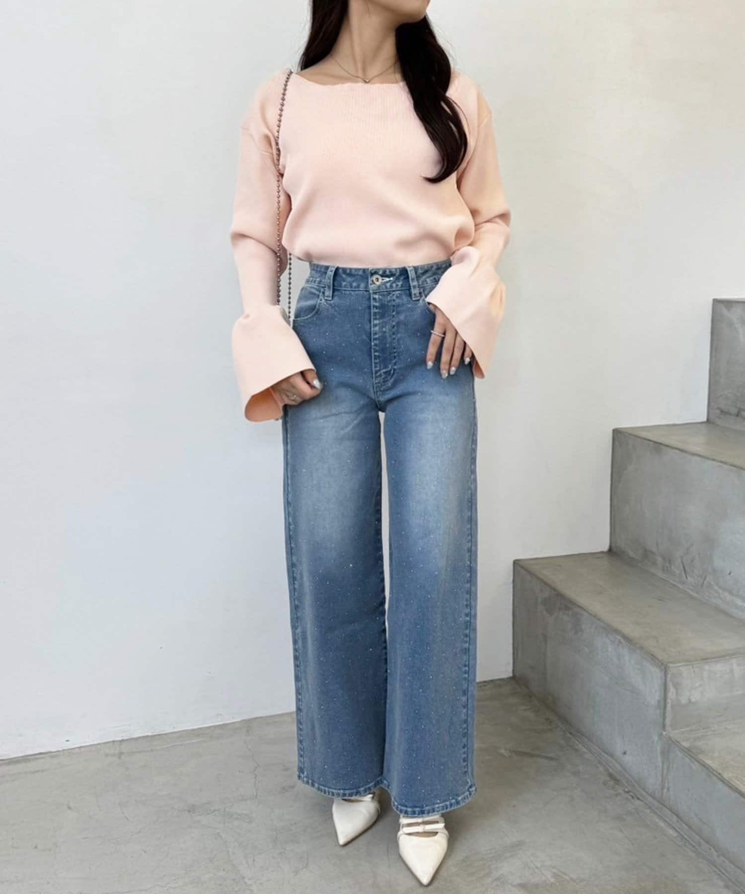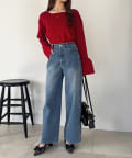 デニムと合わせて、カジュアルながらも女性らしいスタイルに。