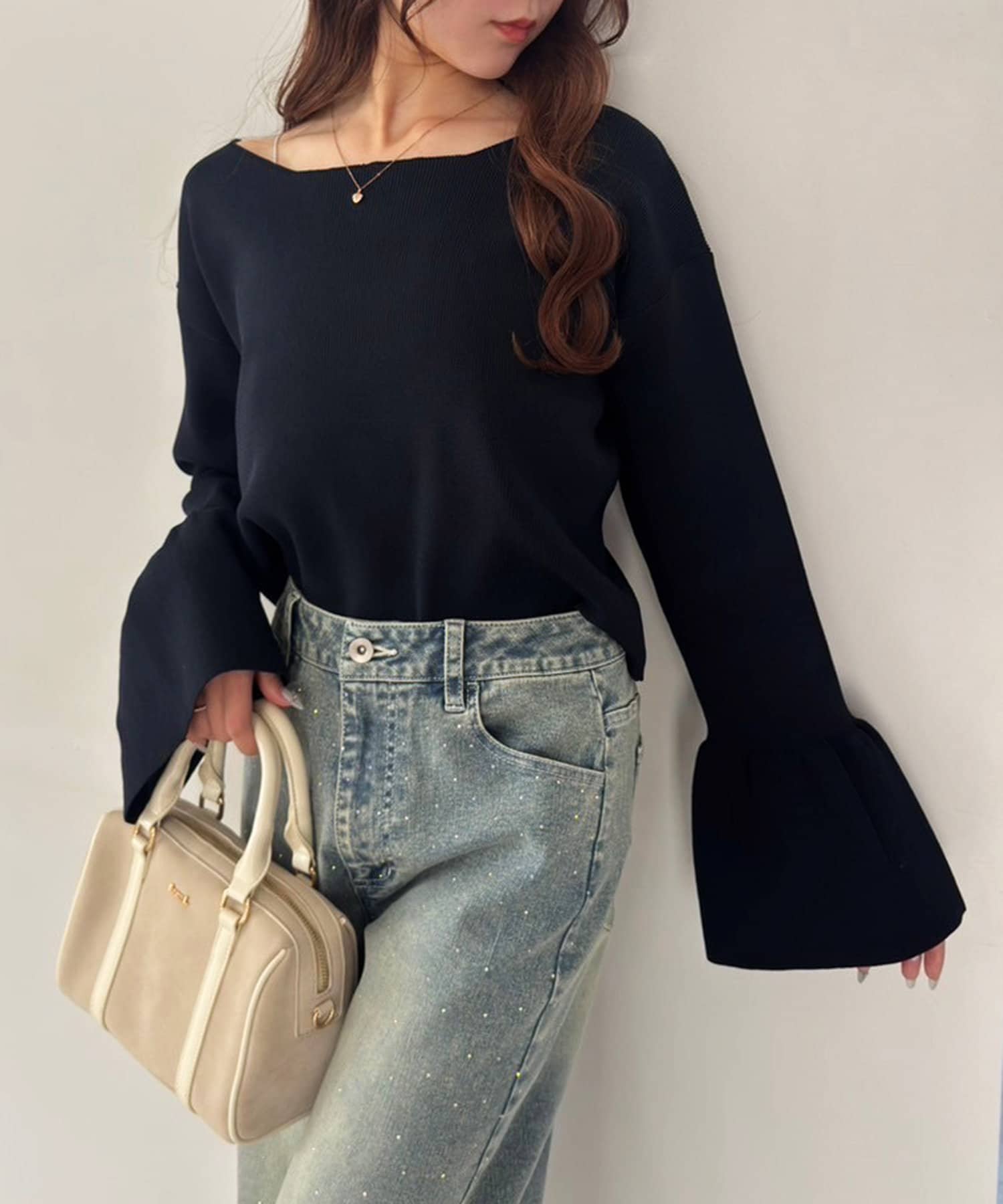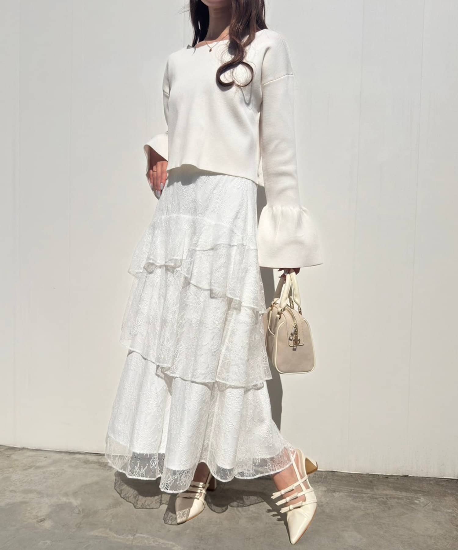 フレアスカートやマーメイドスカートと合わせると、大人可愛いコーデが完成◎