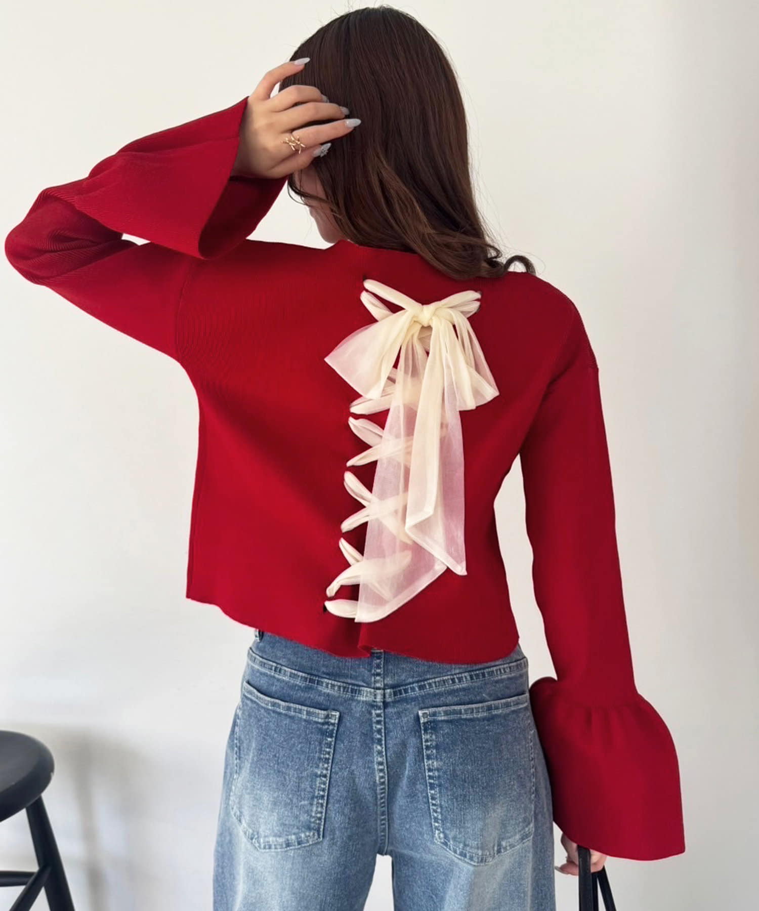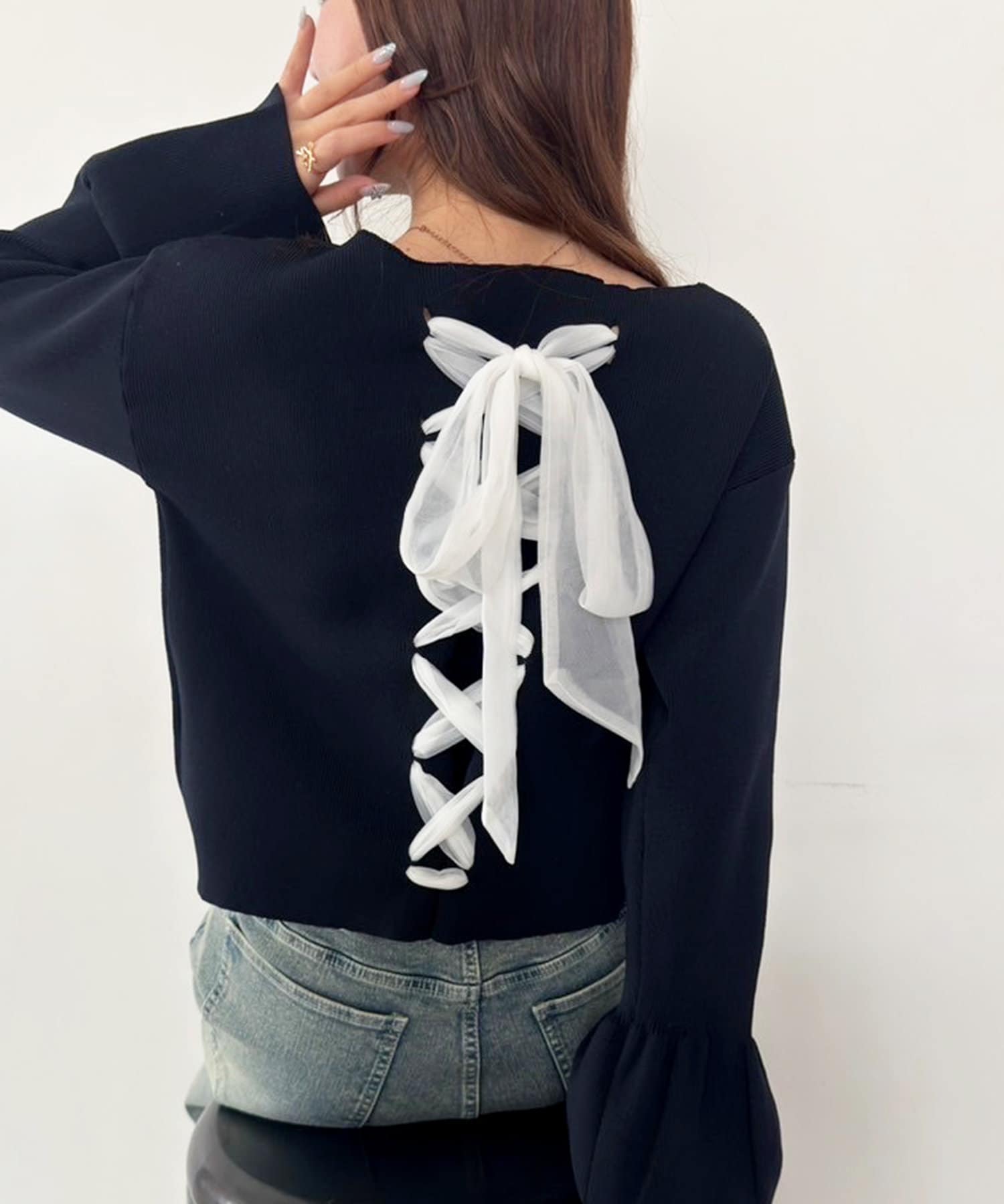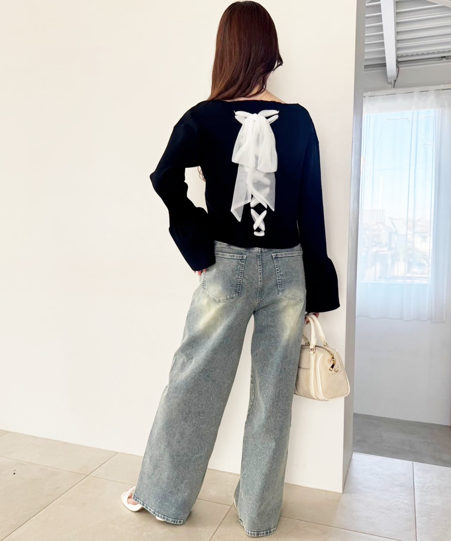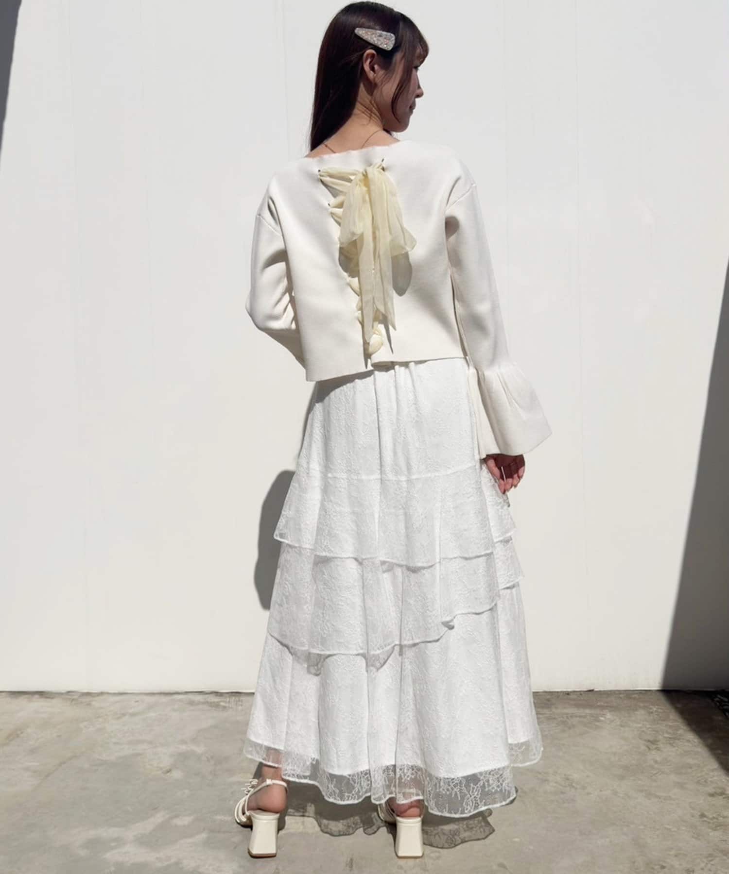 背中部分にはレースアップデザインを施し、後ろ姿まで可愛く決まる一枚に仕上げました。