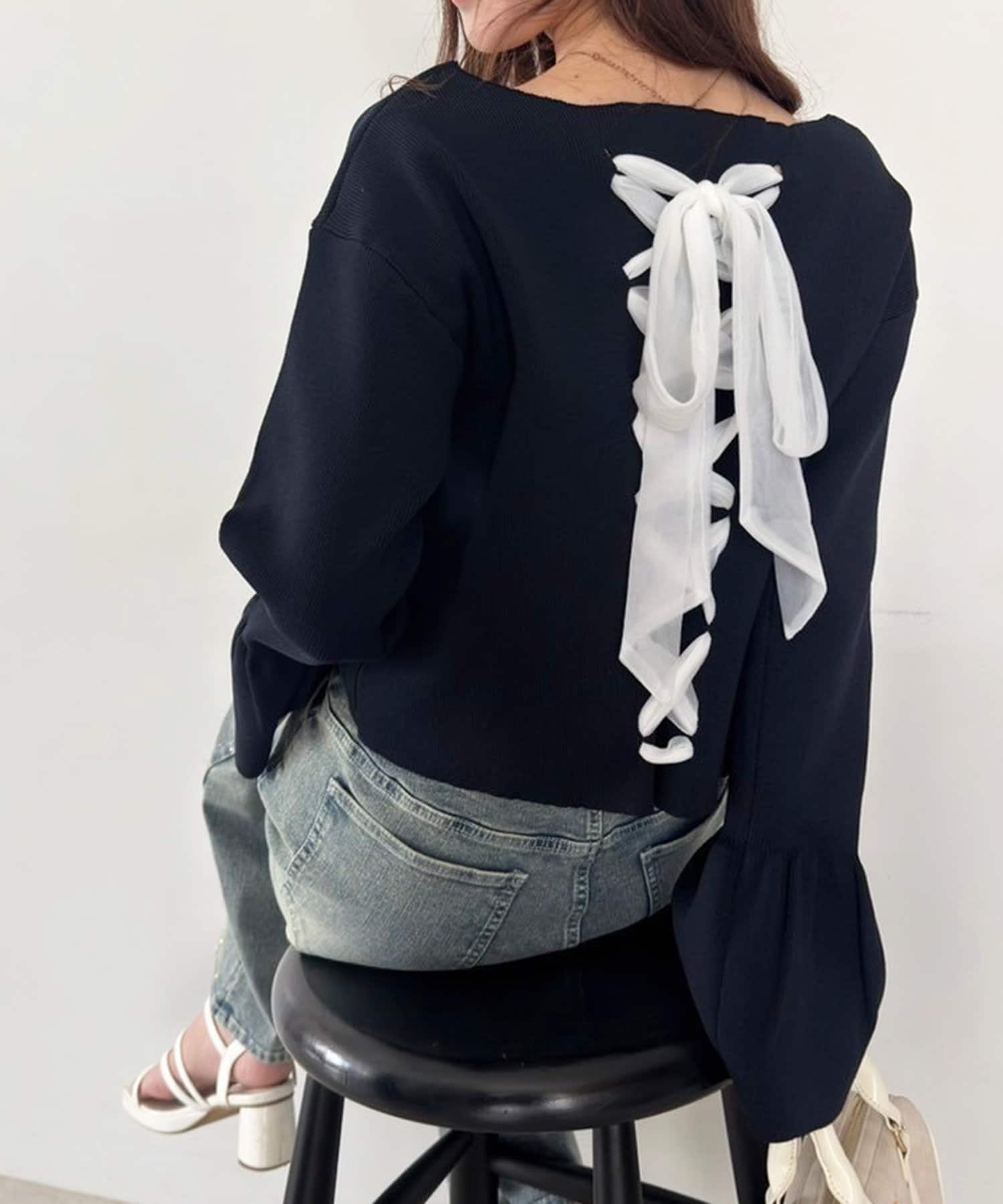 シンプルながらも、バックレースアップがアクセントになるトップスで、