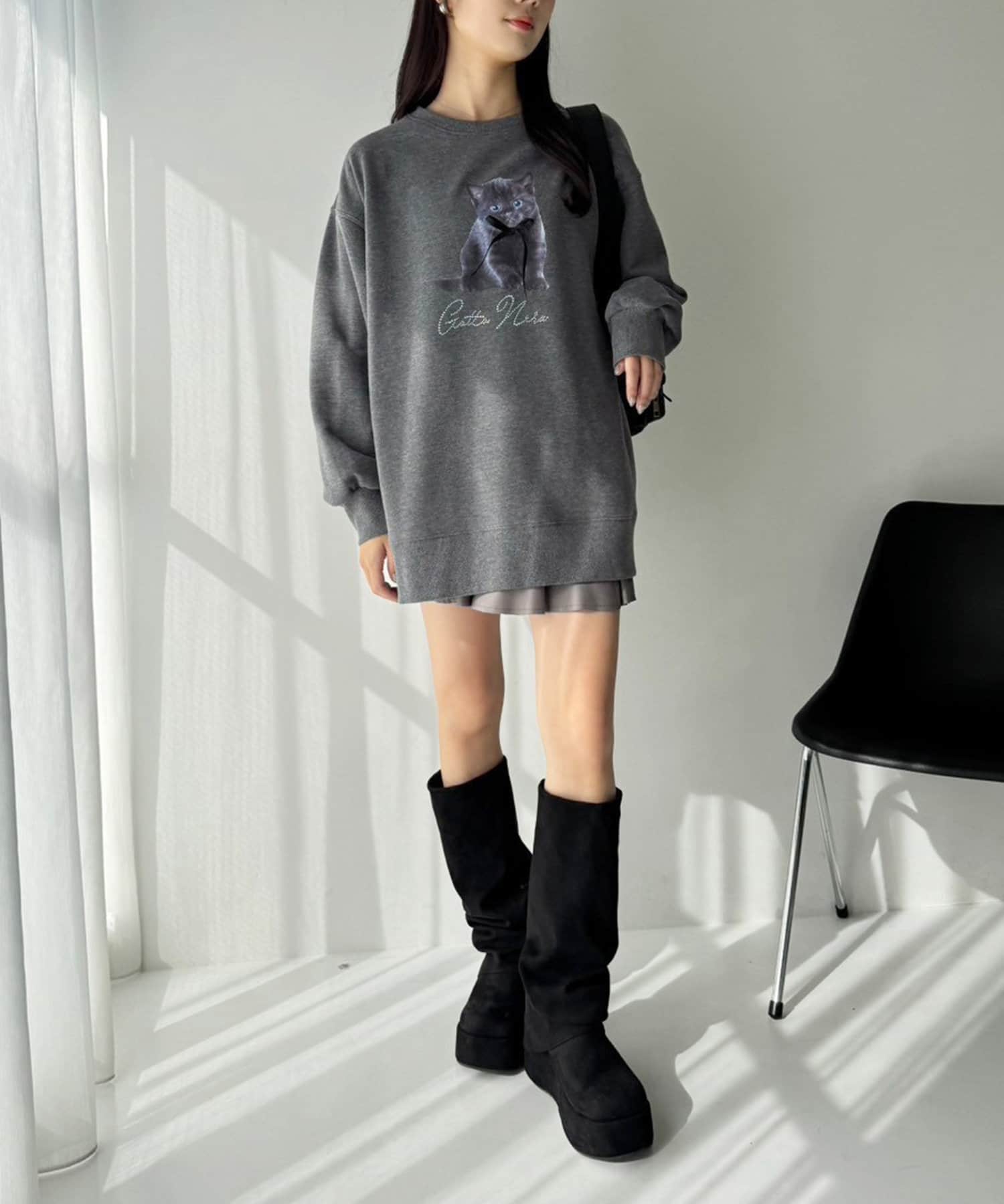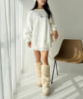 ミニボトムスと合わせて、ロングブーツ合わせだと、トレンドライクなコーディネートになります。