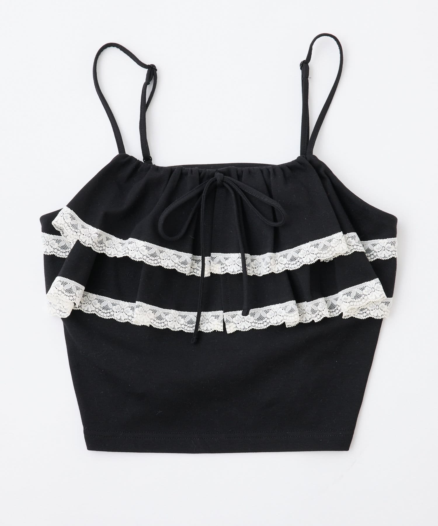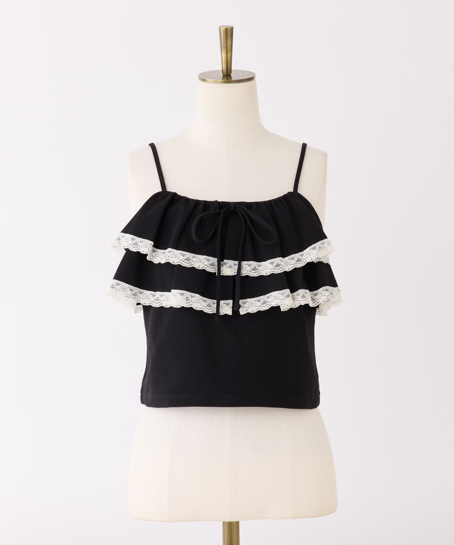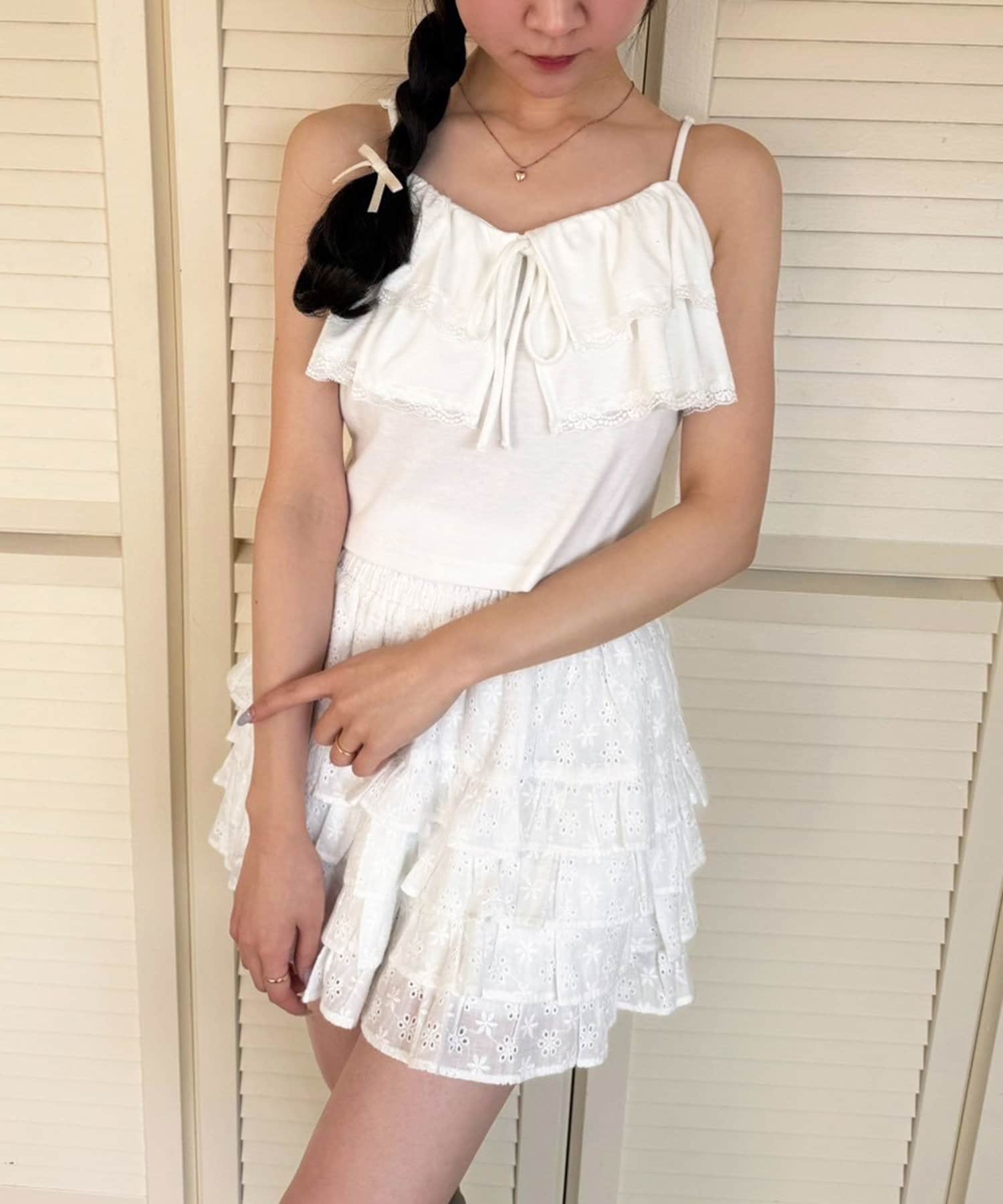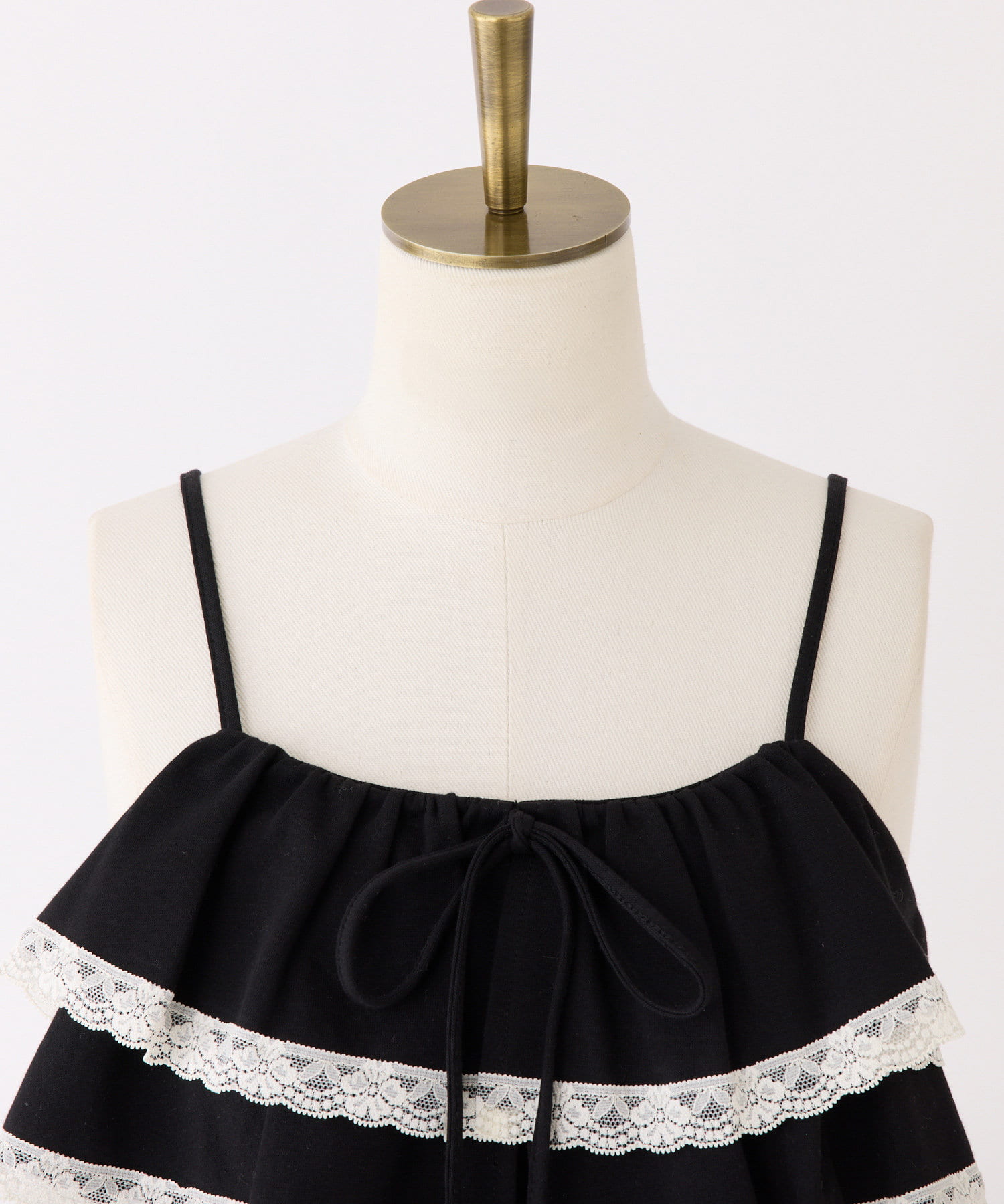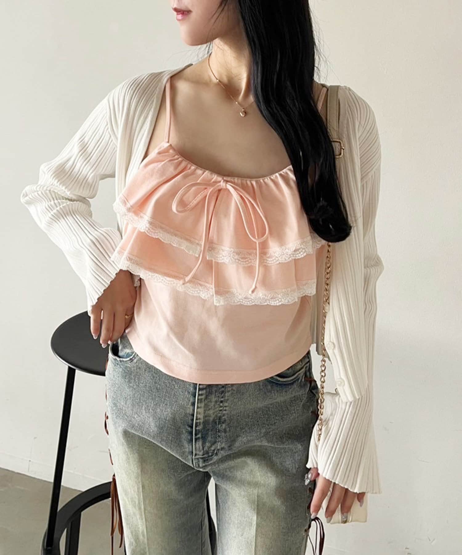 コーデのアクセントになるリボンとフリルがポイントのキャミソール