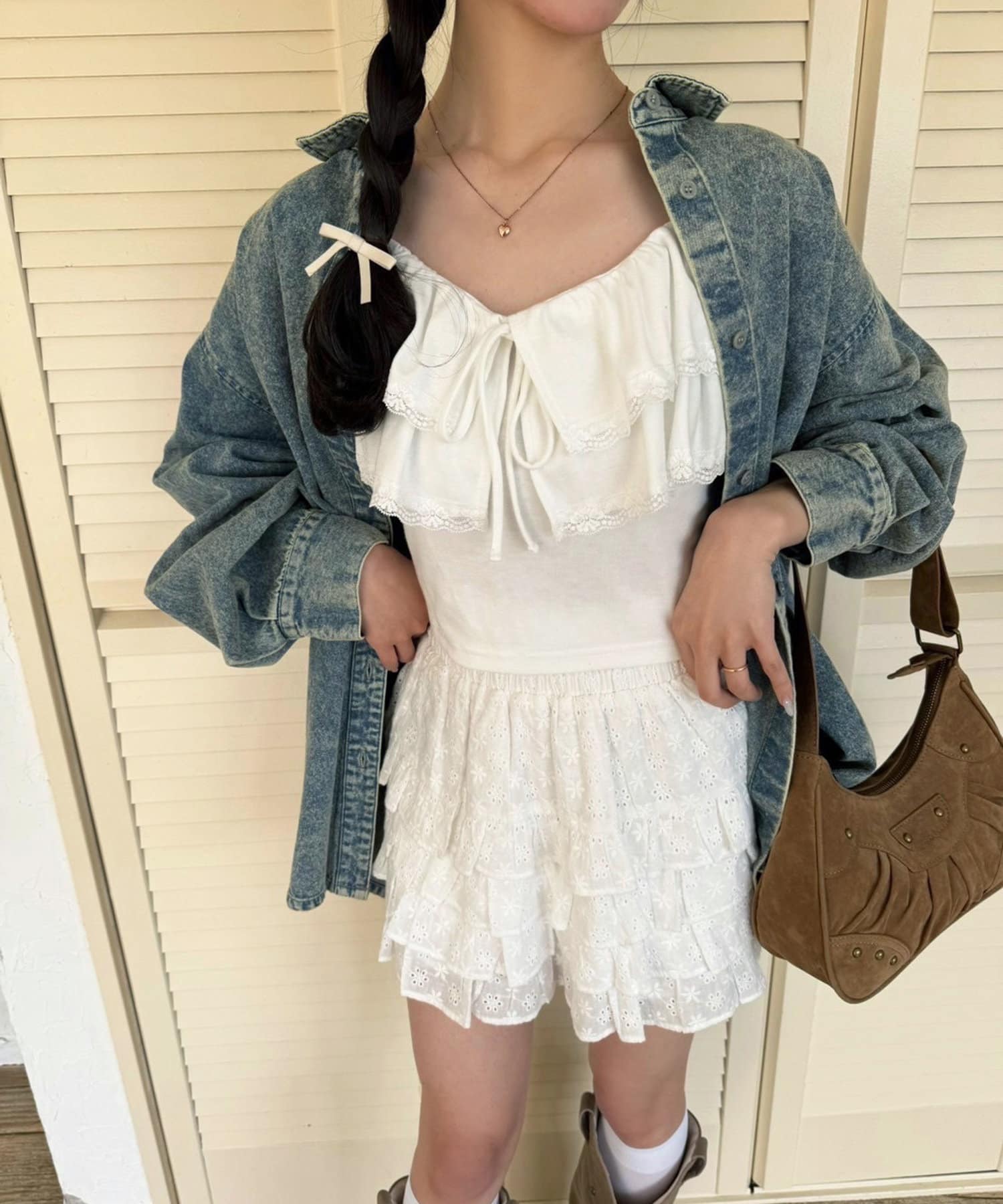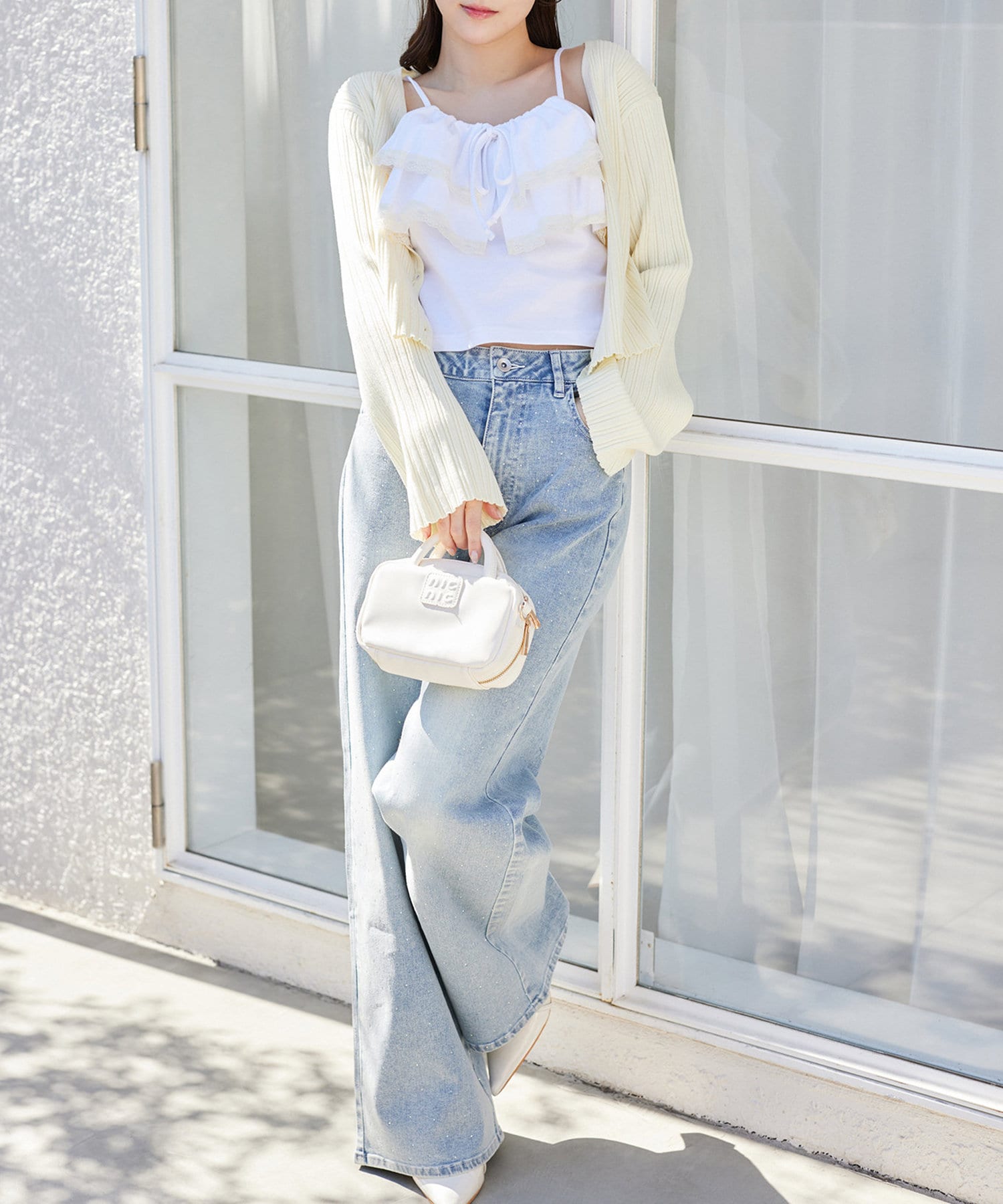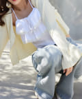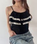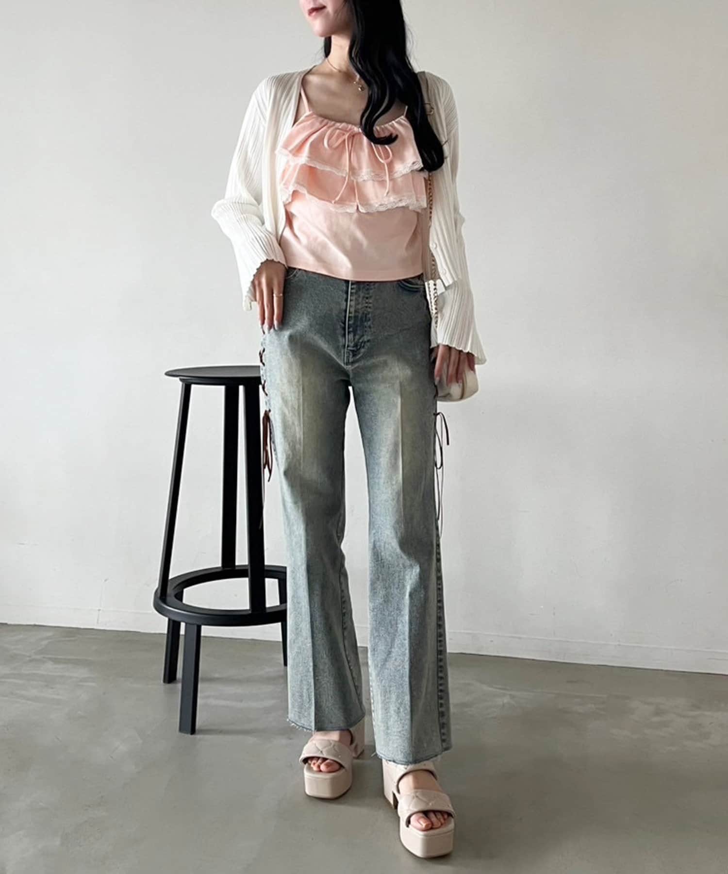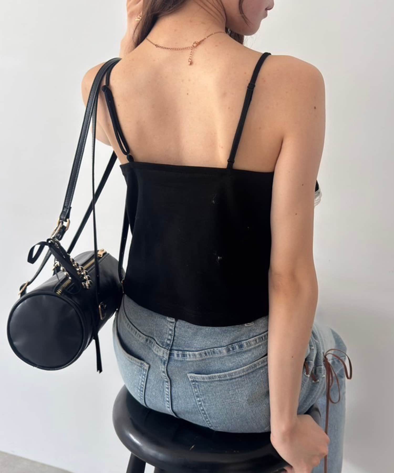 コーデのアクセントになるリボンとフリルがポイントのキャミソール