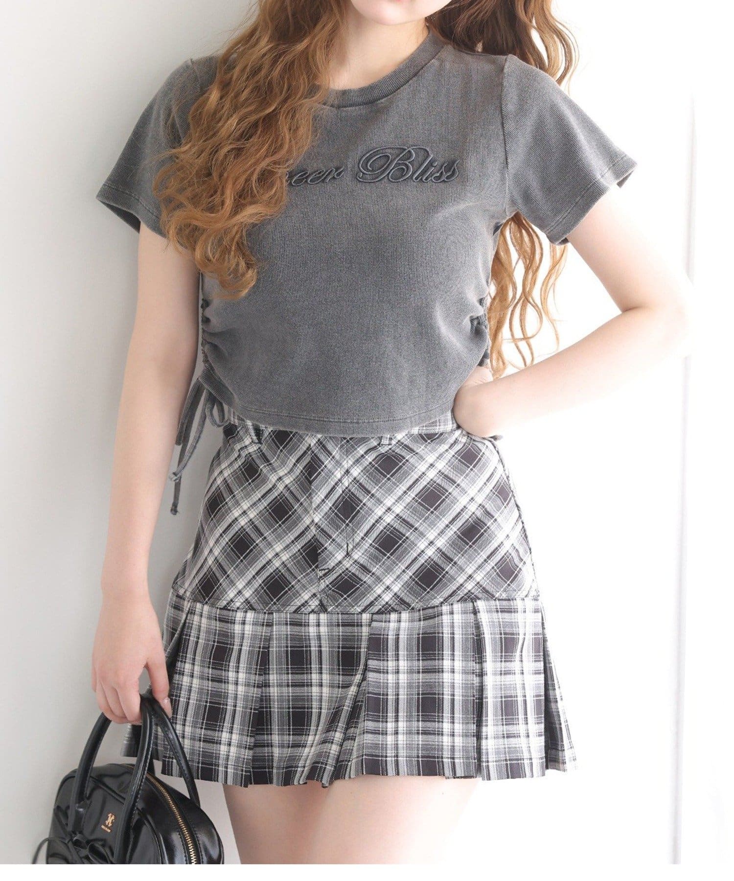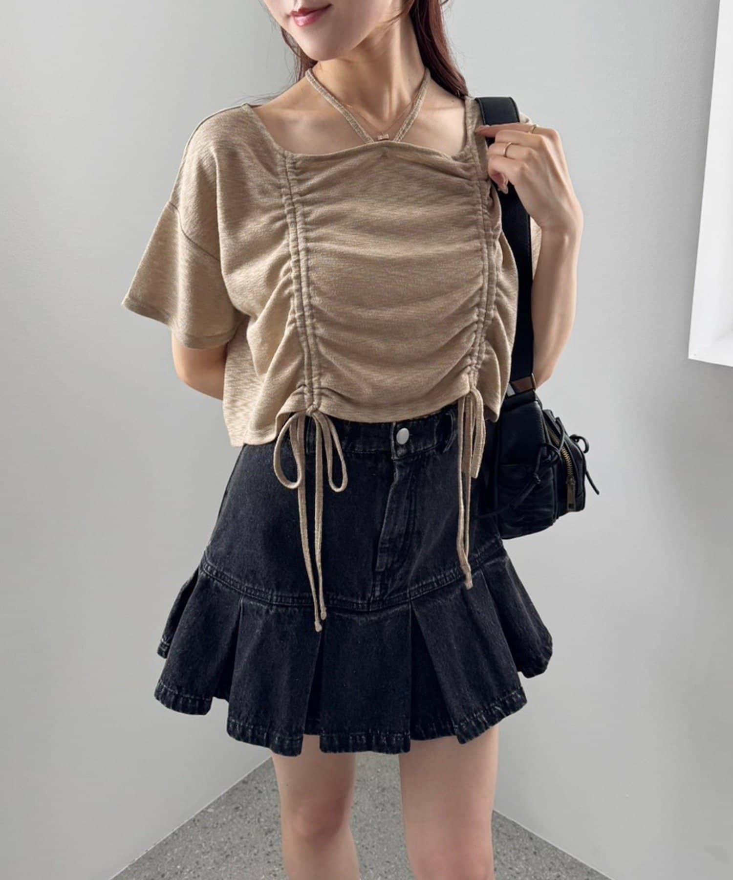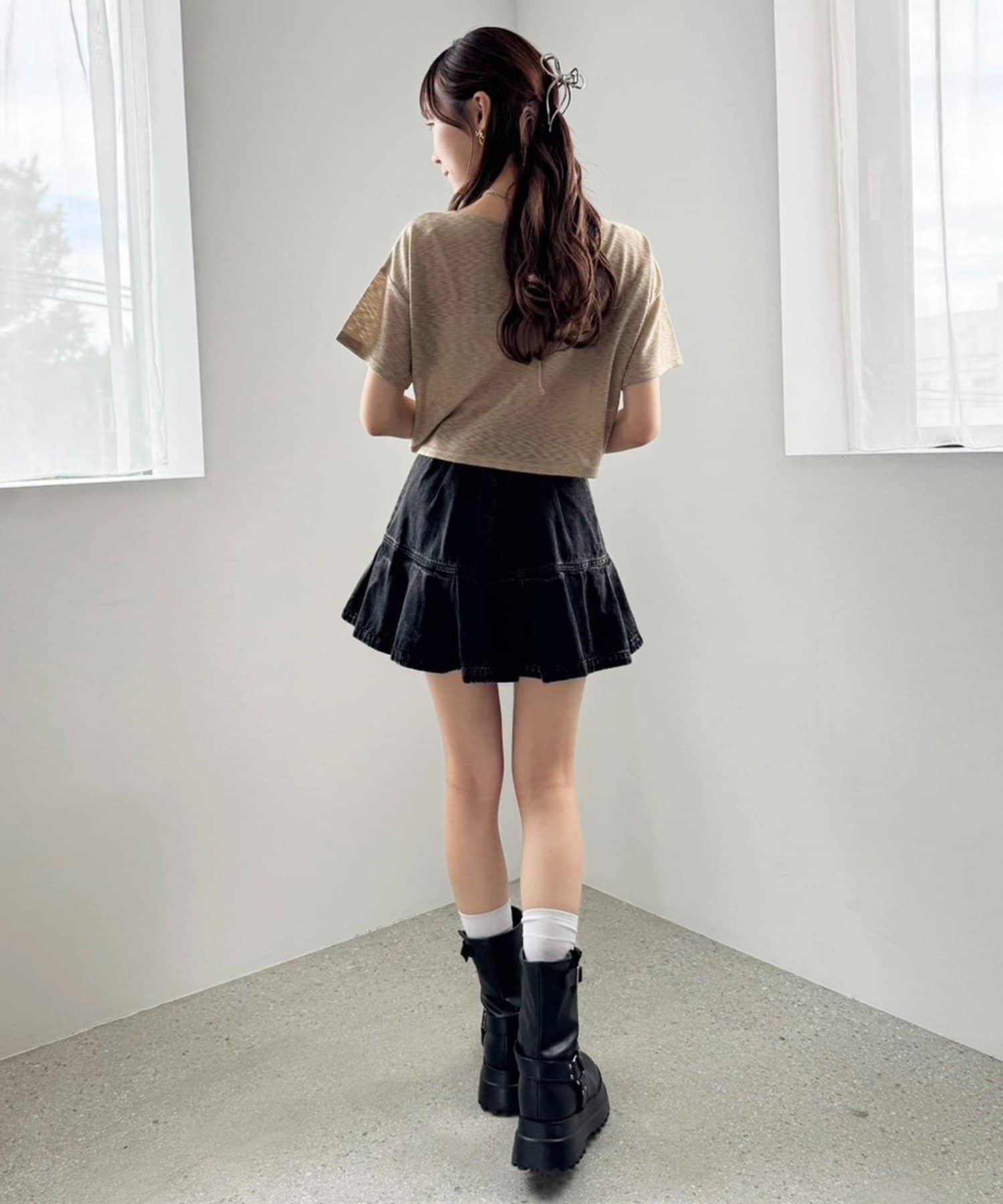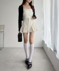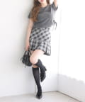 脚が綺麗に見える絶妙な丈感も嬉しいポイント。裏地がパンツ仕様になっているので、ミニ丈でも安心感抜群◎