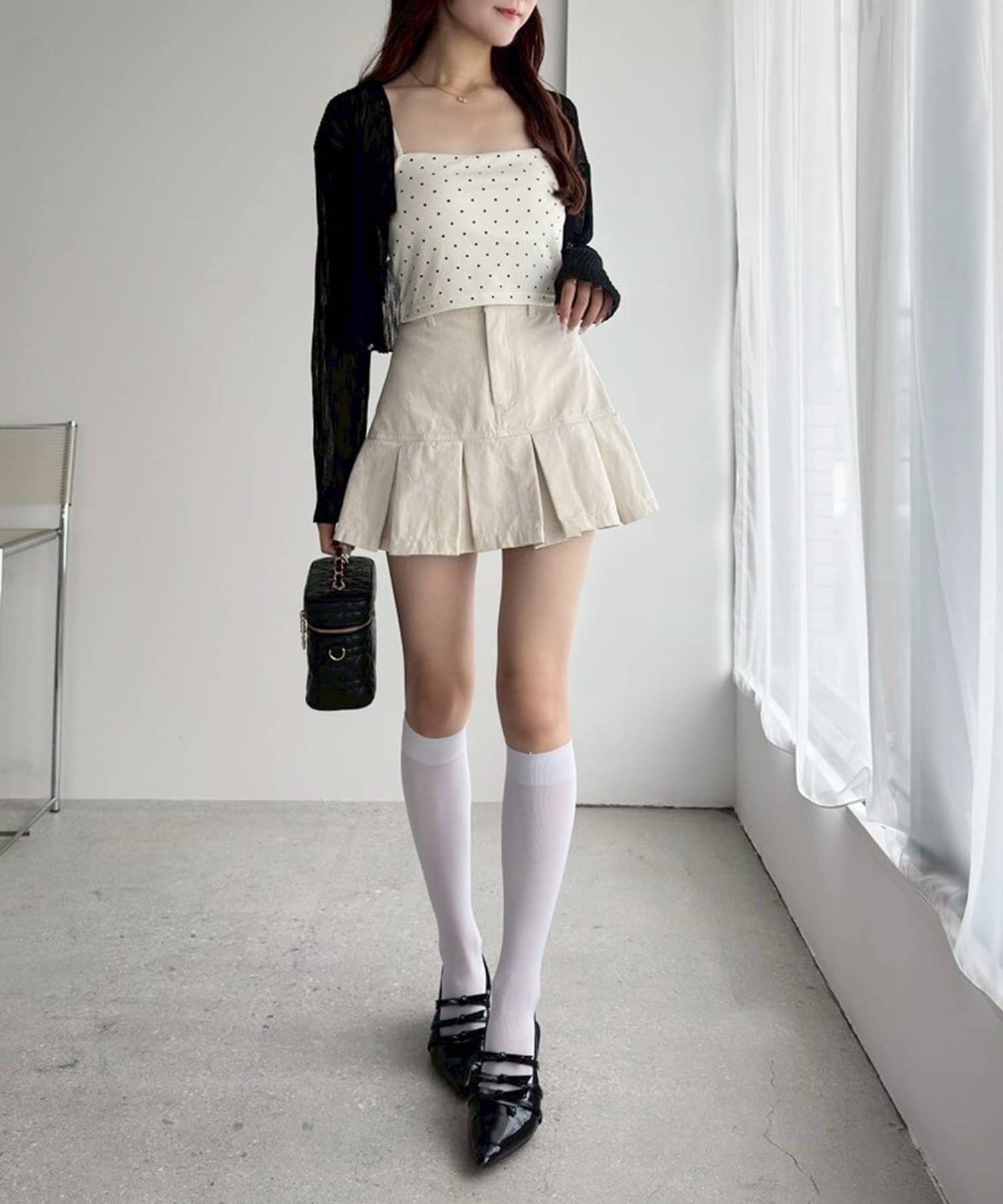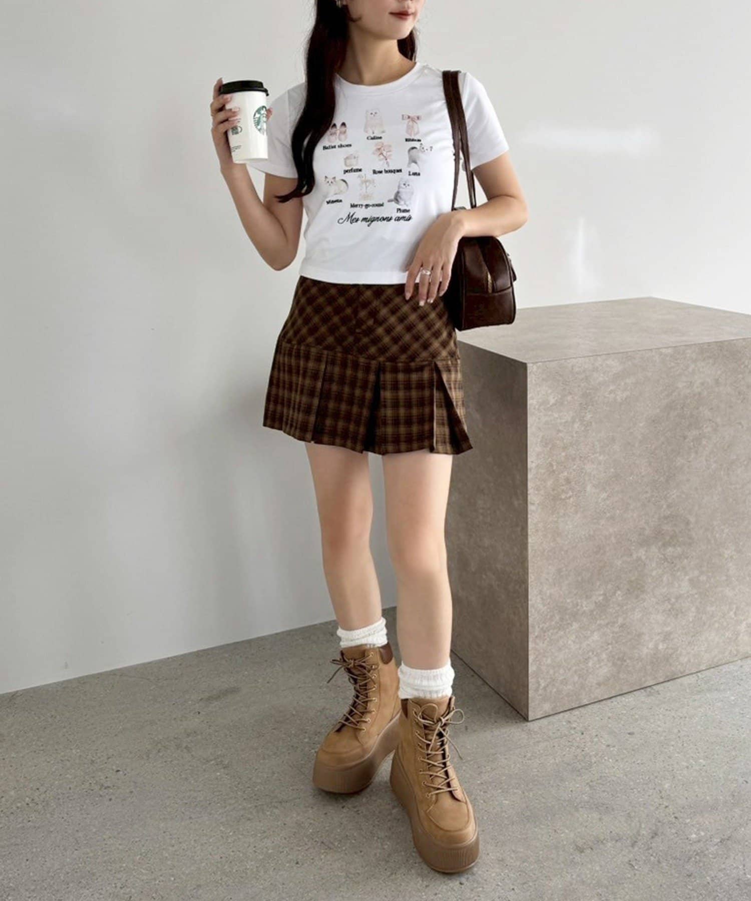 フレンチガーリーにも韓国風コーデにもオススメのプリーツミニスカート