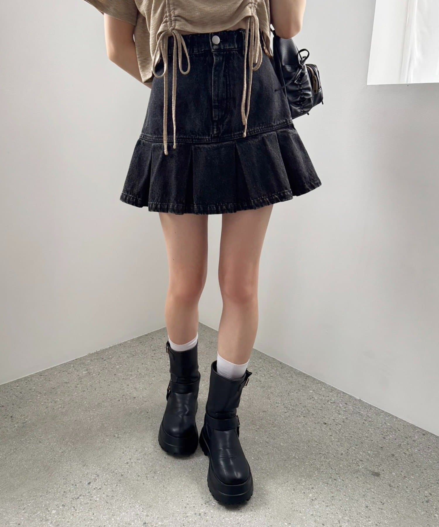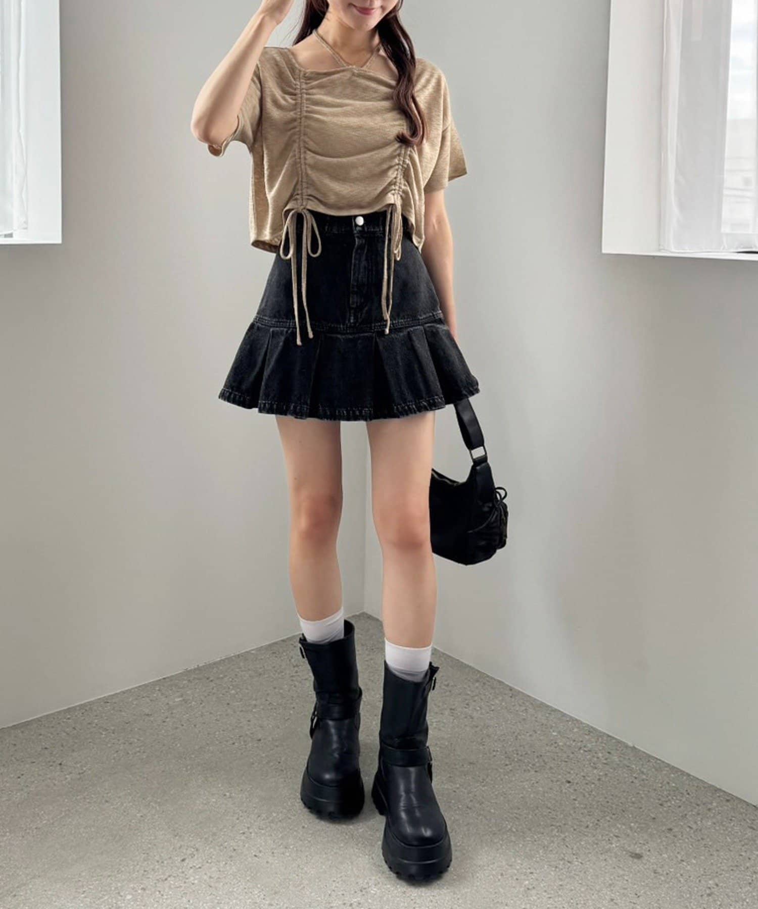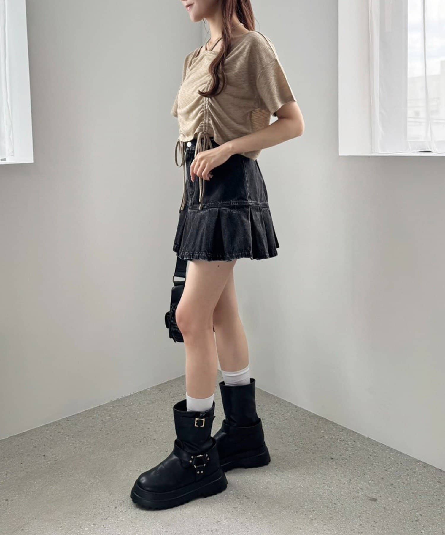 ミニ丈デザインなので、ロングブーツやサイドゴアブーツなど、