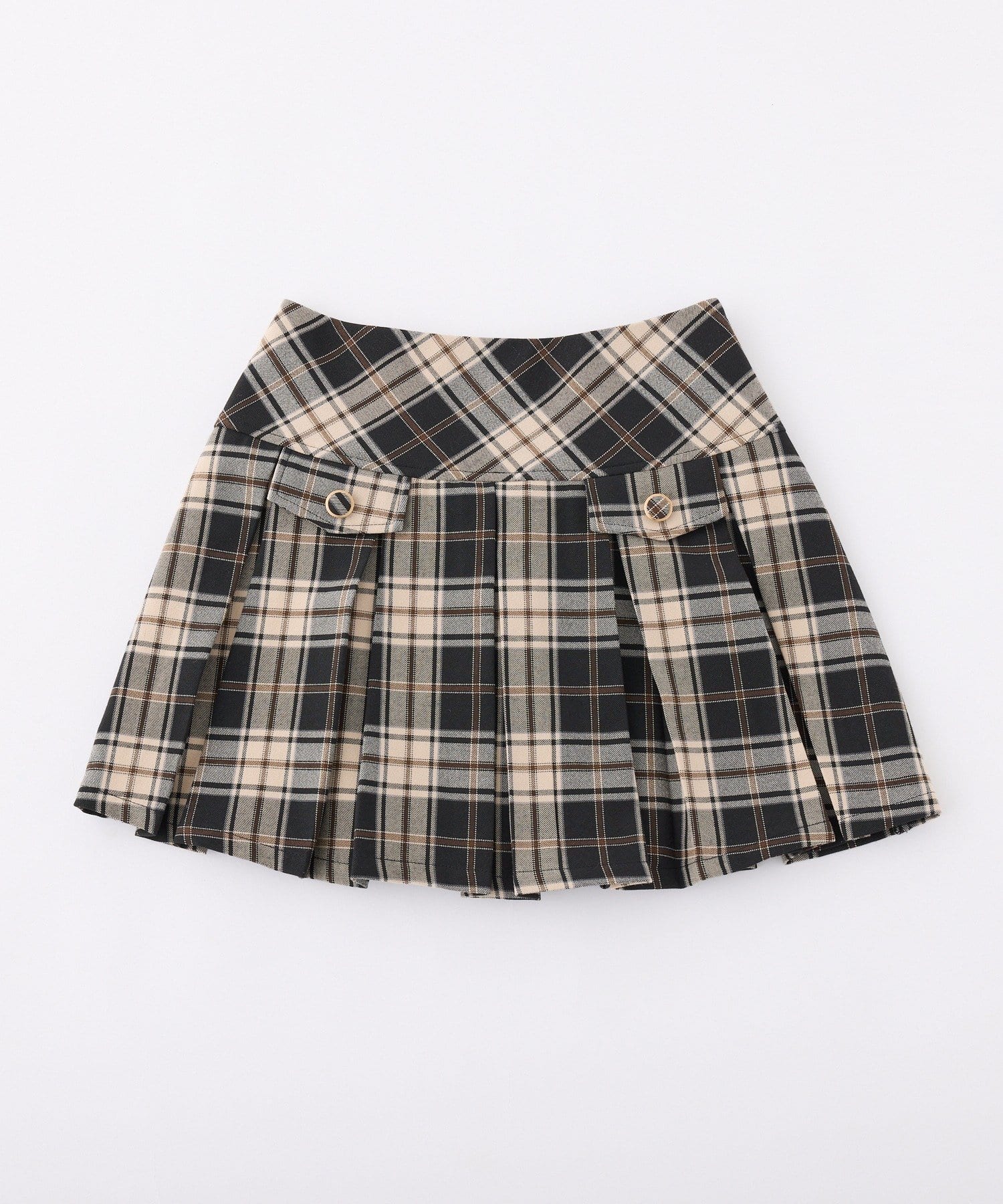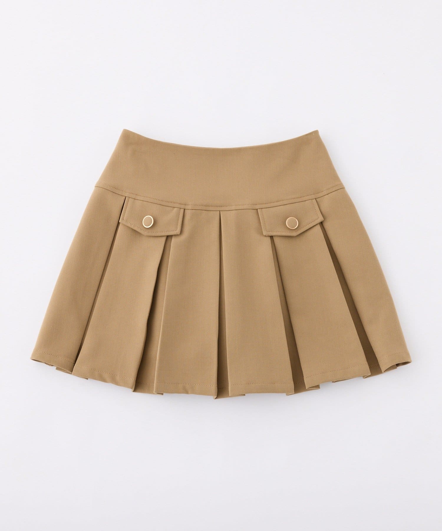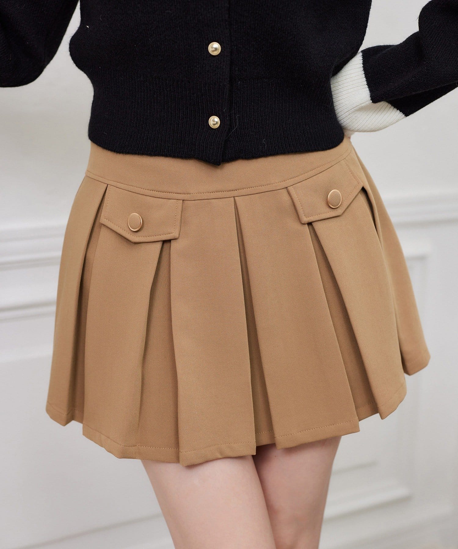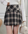 フロントの金ボタンがポイントのプリーツミニスカート。