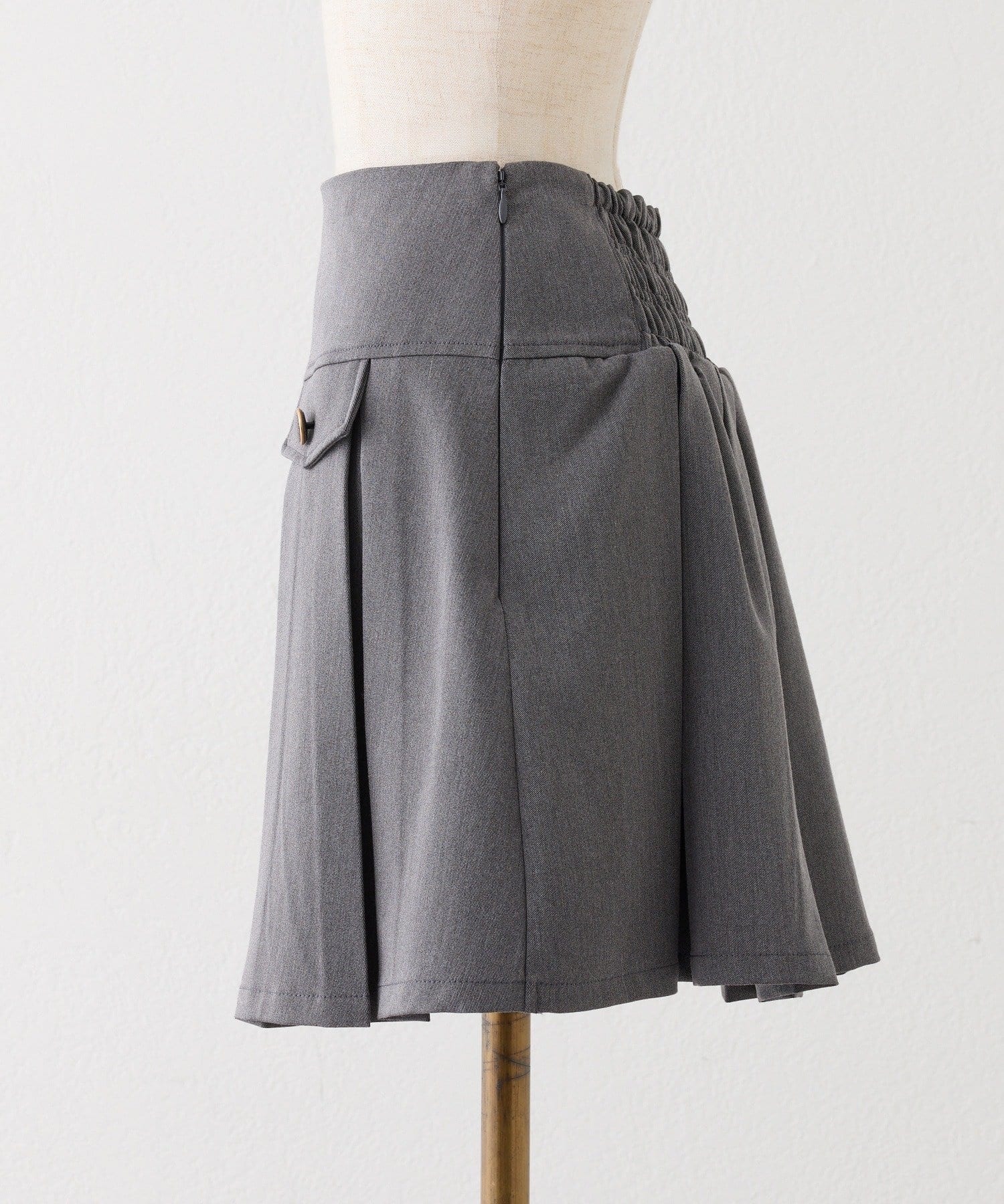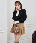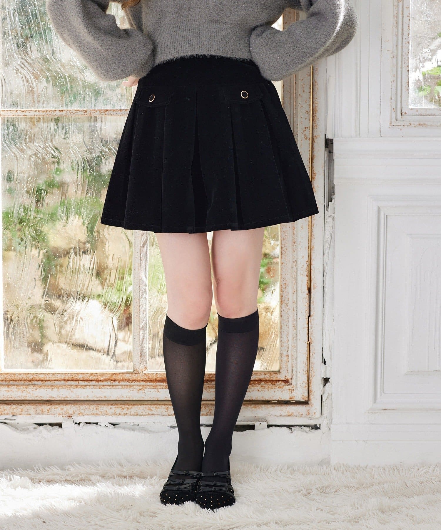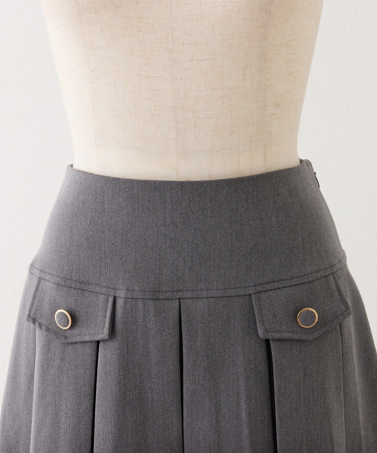 フロントの金ボタンがポイントのプリーツミニスカート。