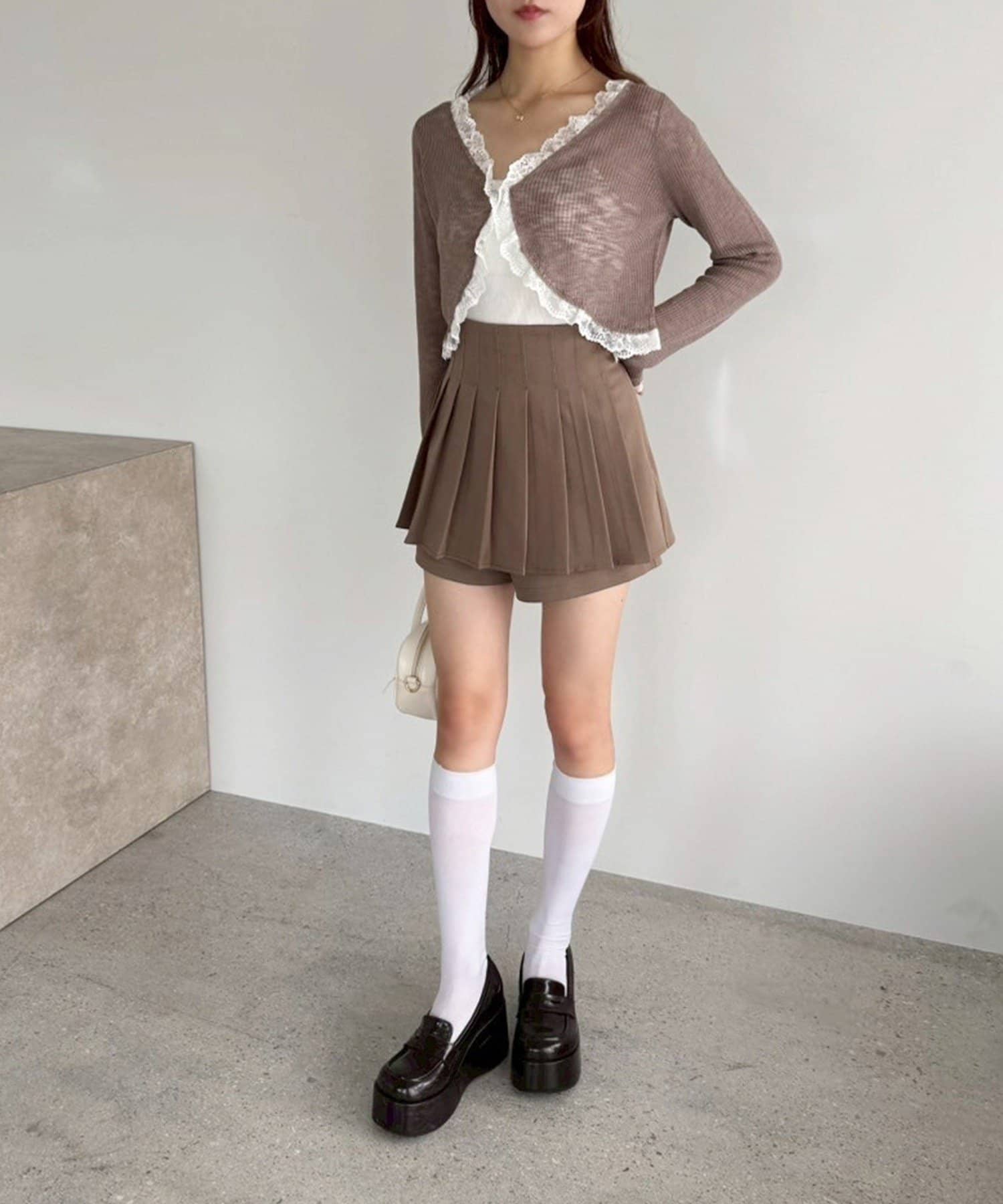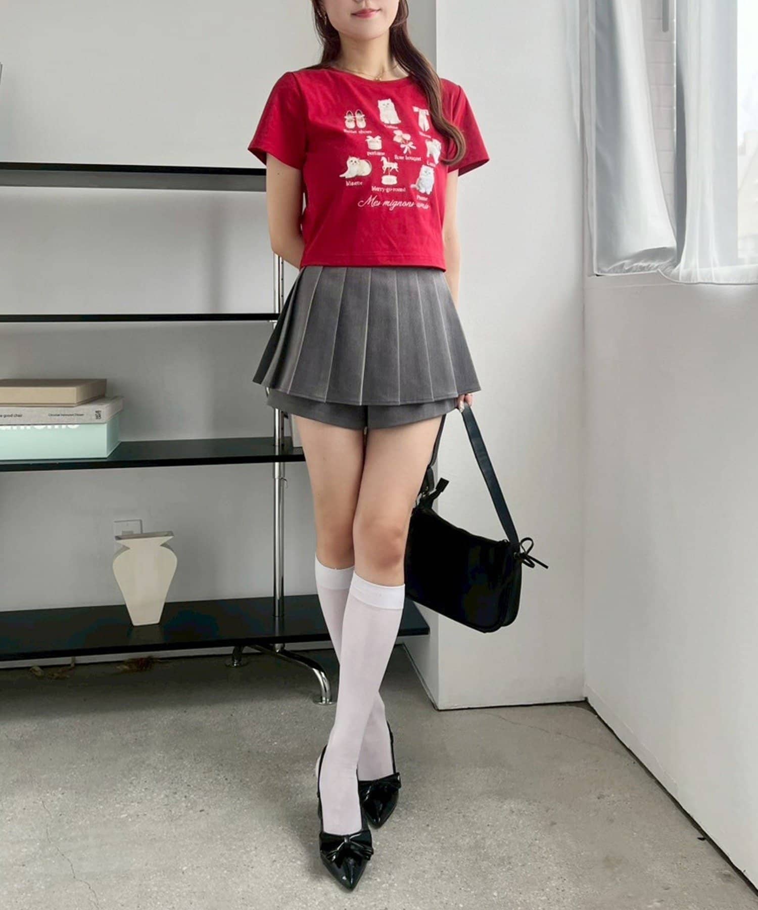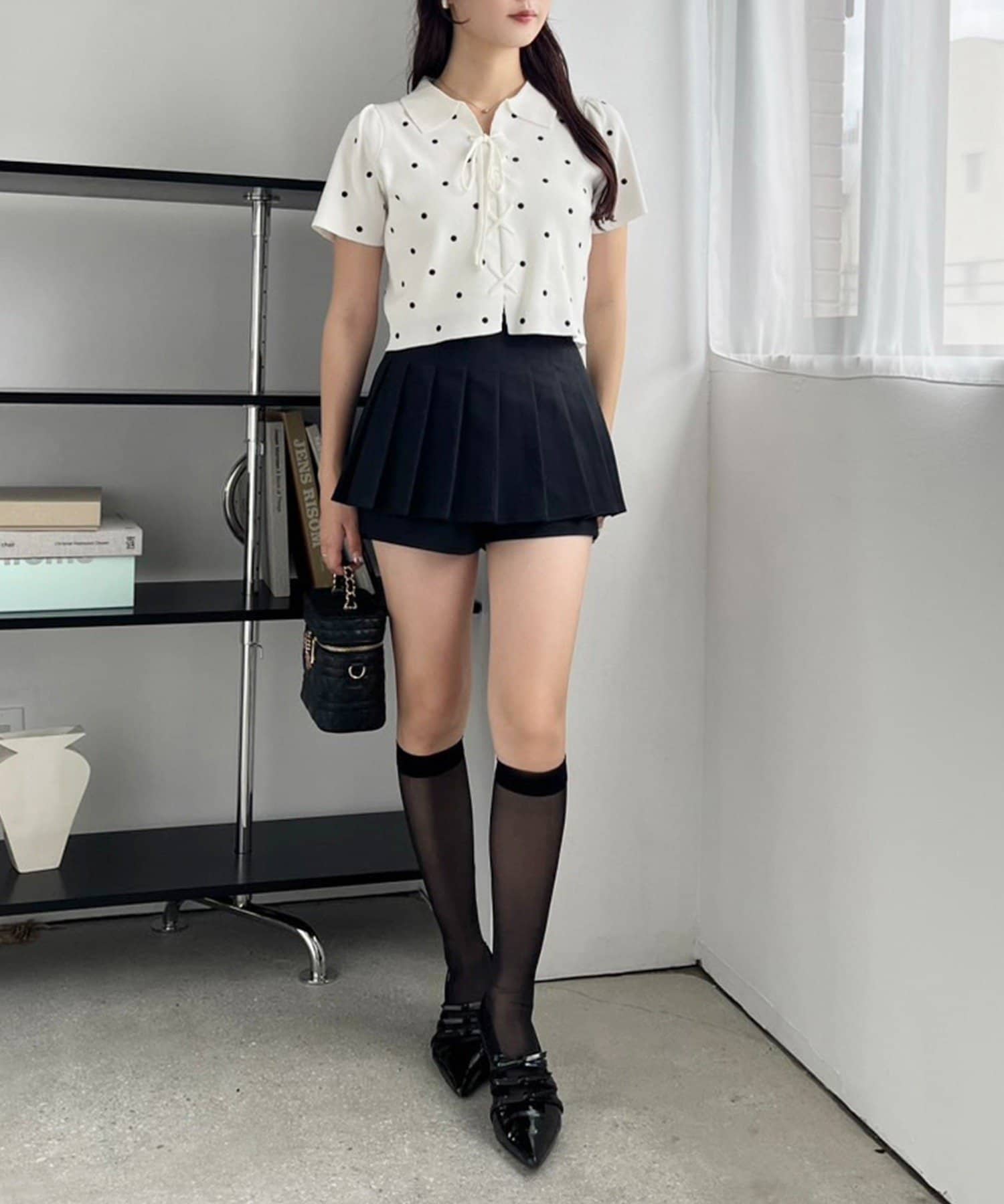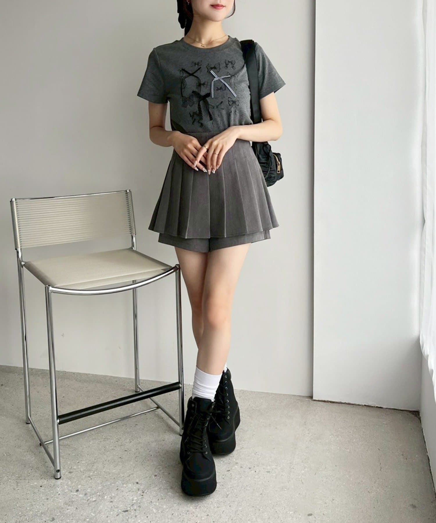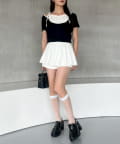 スカパンツになっているので、ミニ丈でも気にせずに着用していただけます。