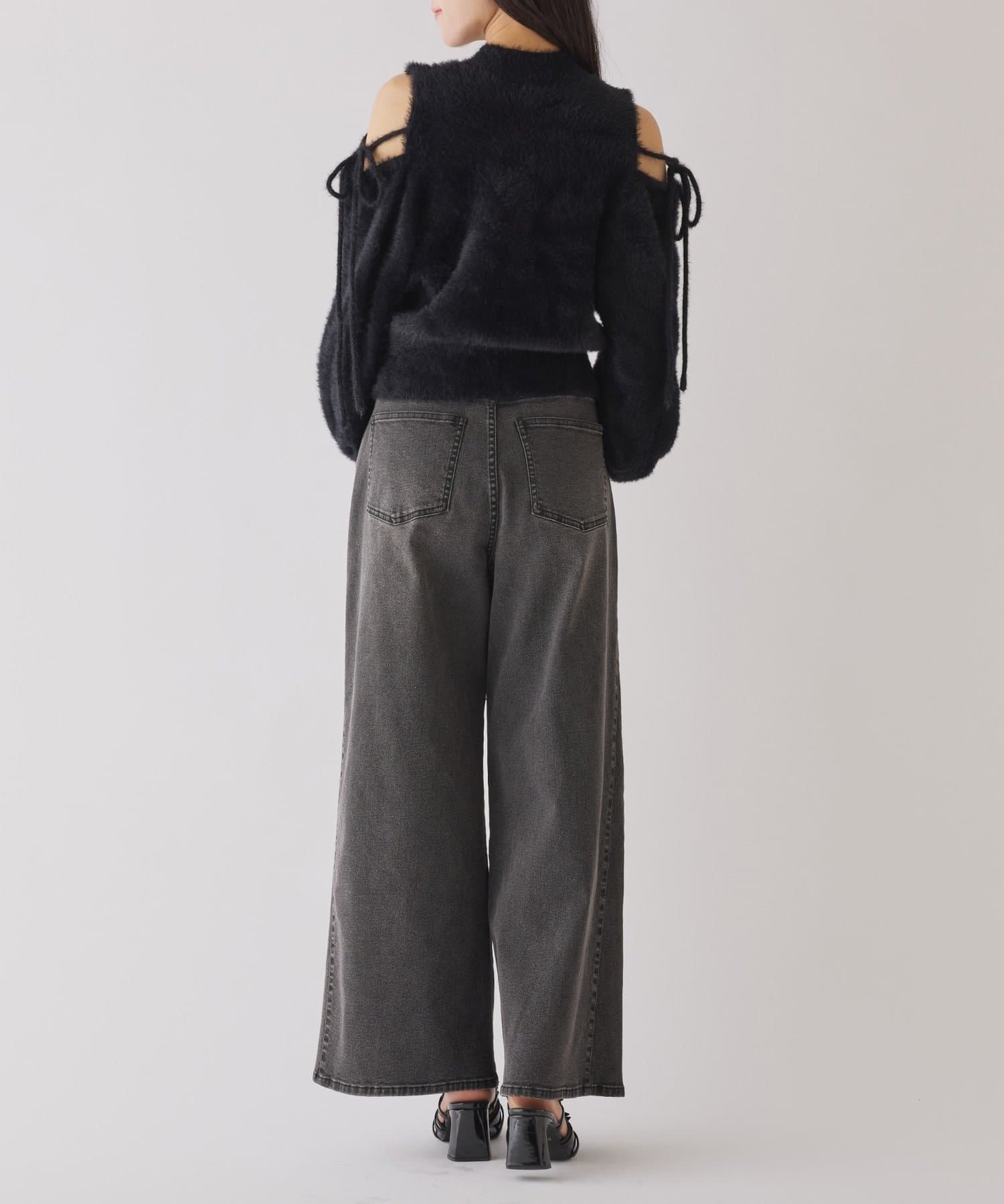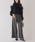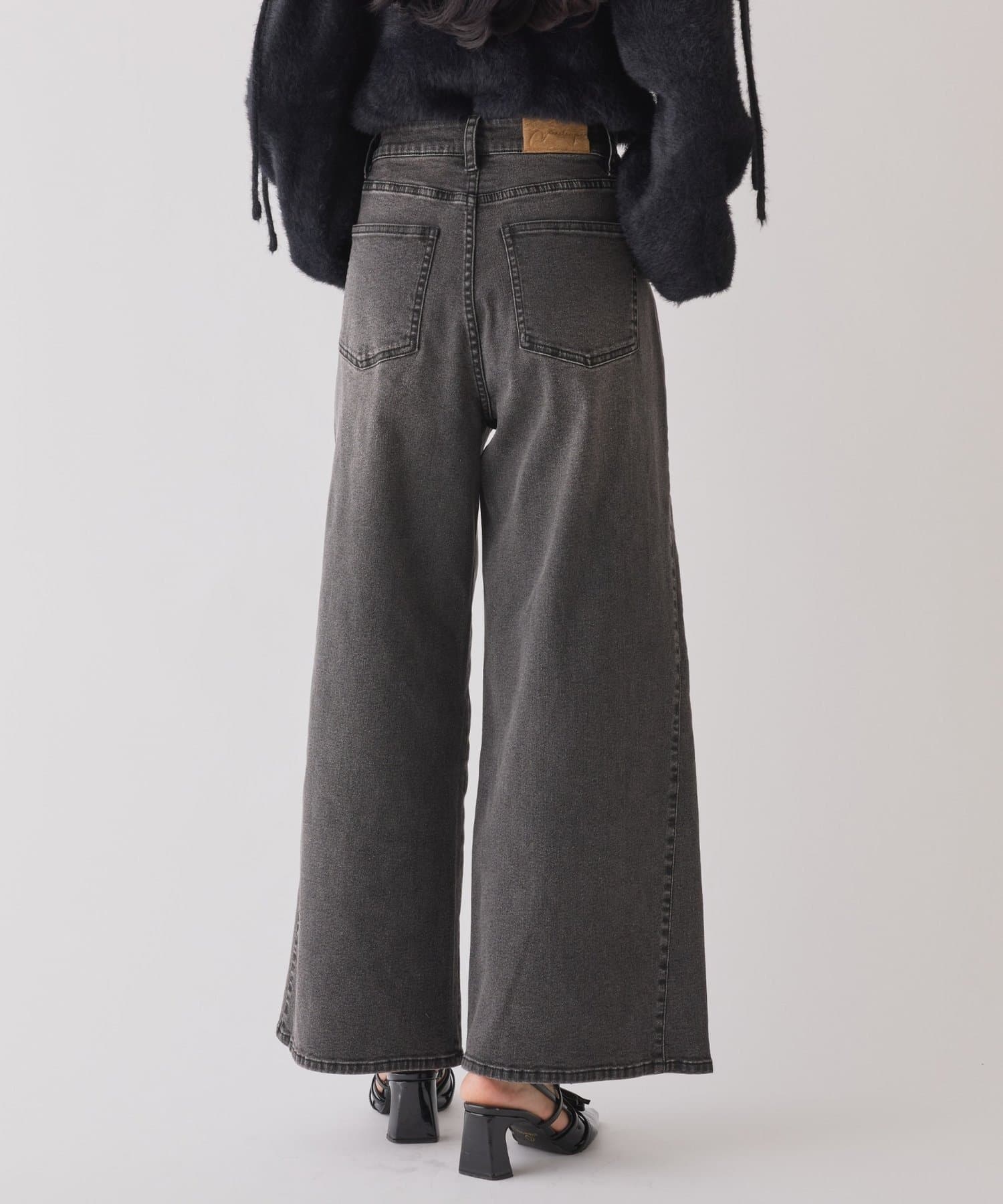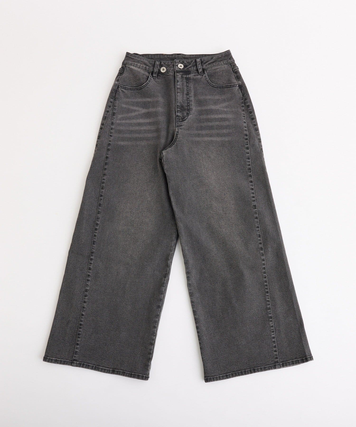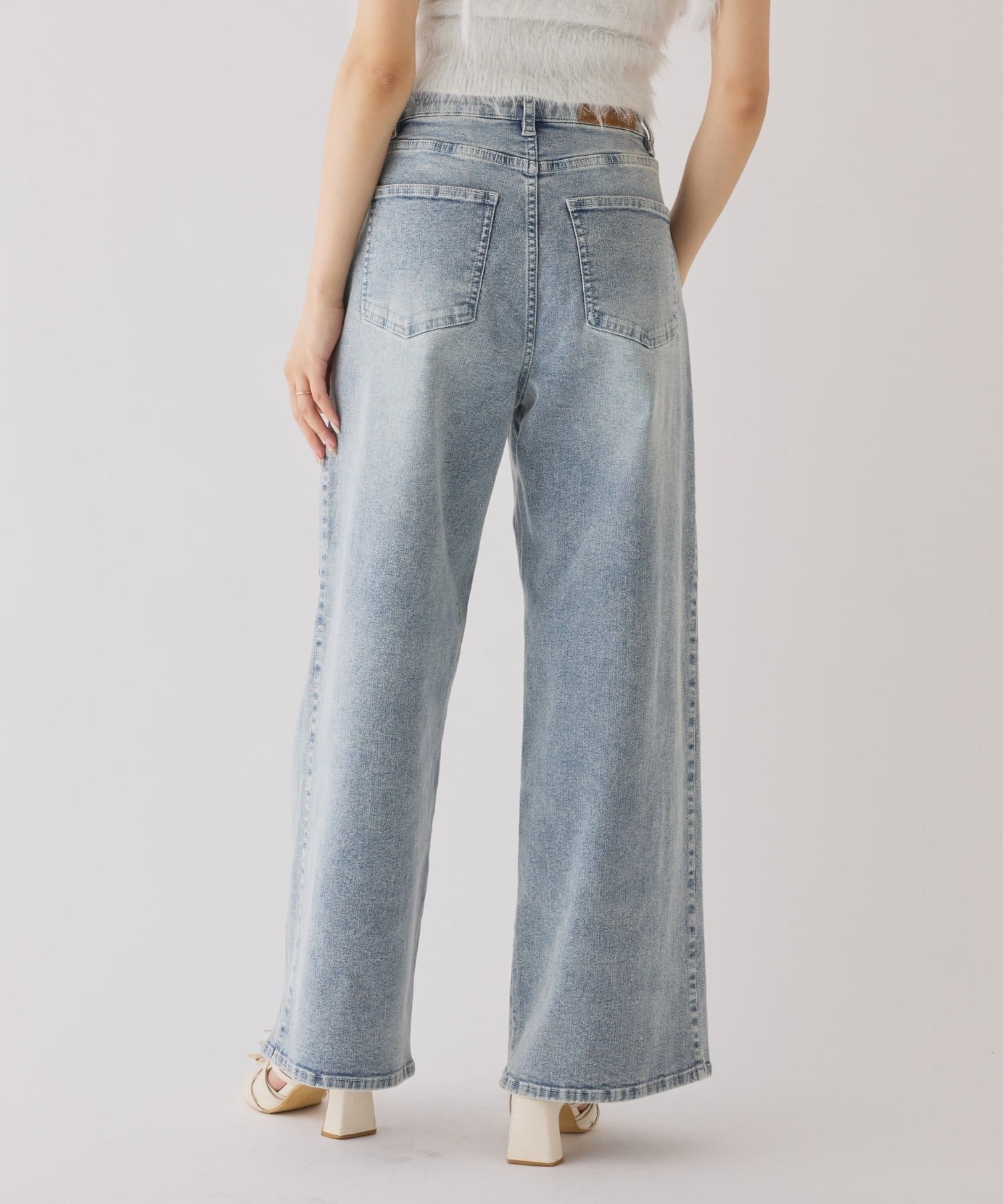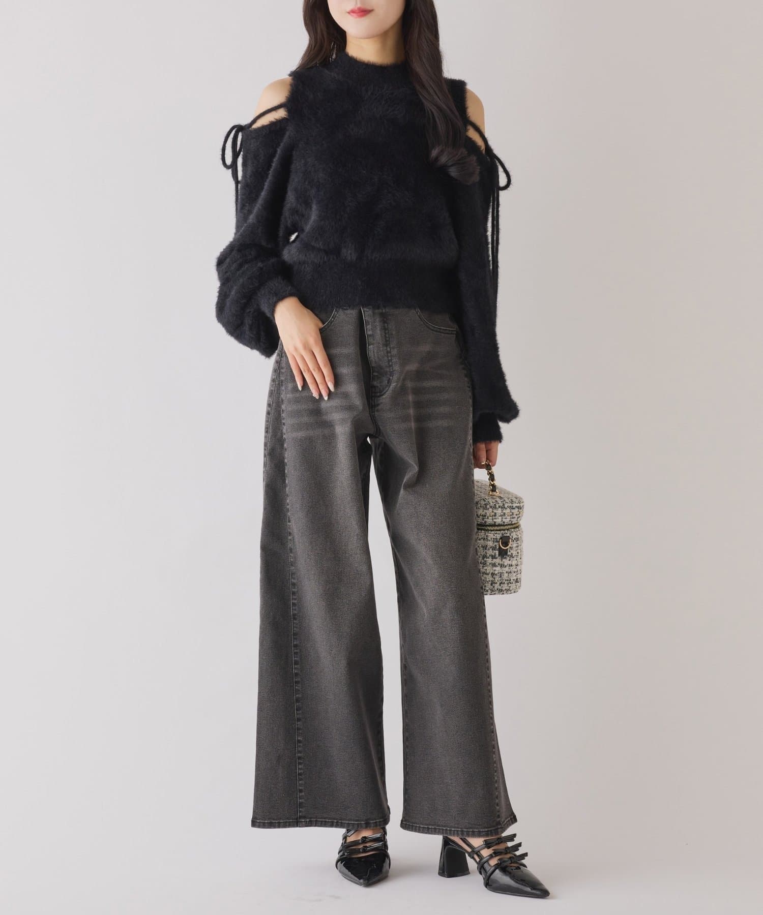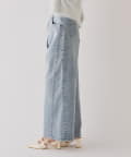 全体的にゆったりとしたシルエットのワイドデニムは、華奢見せ効果も。