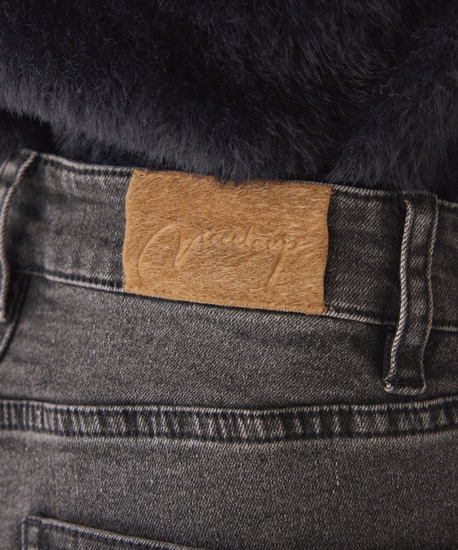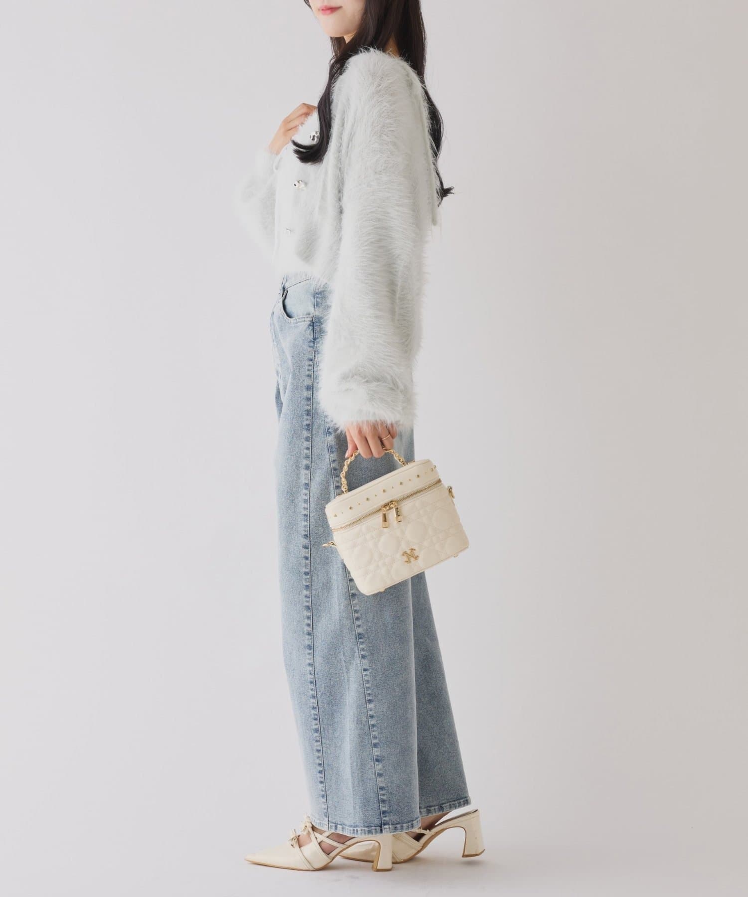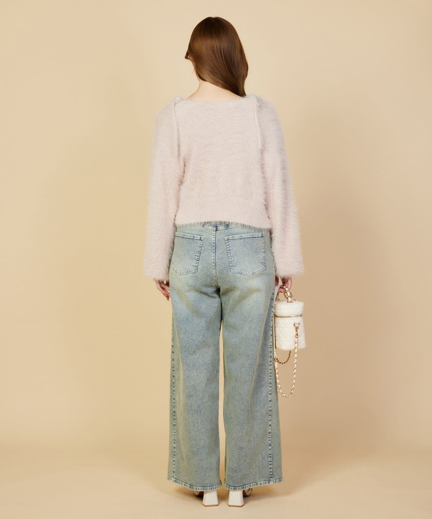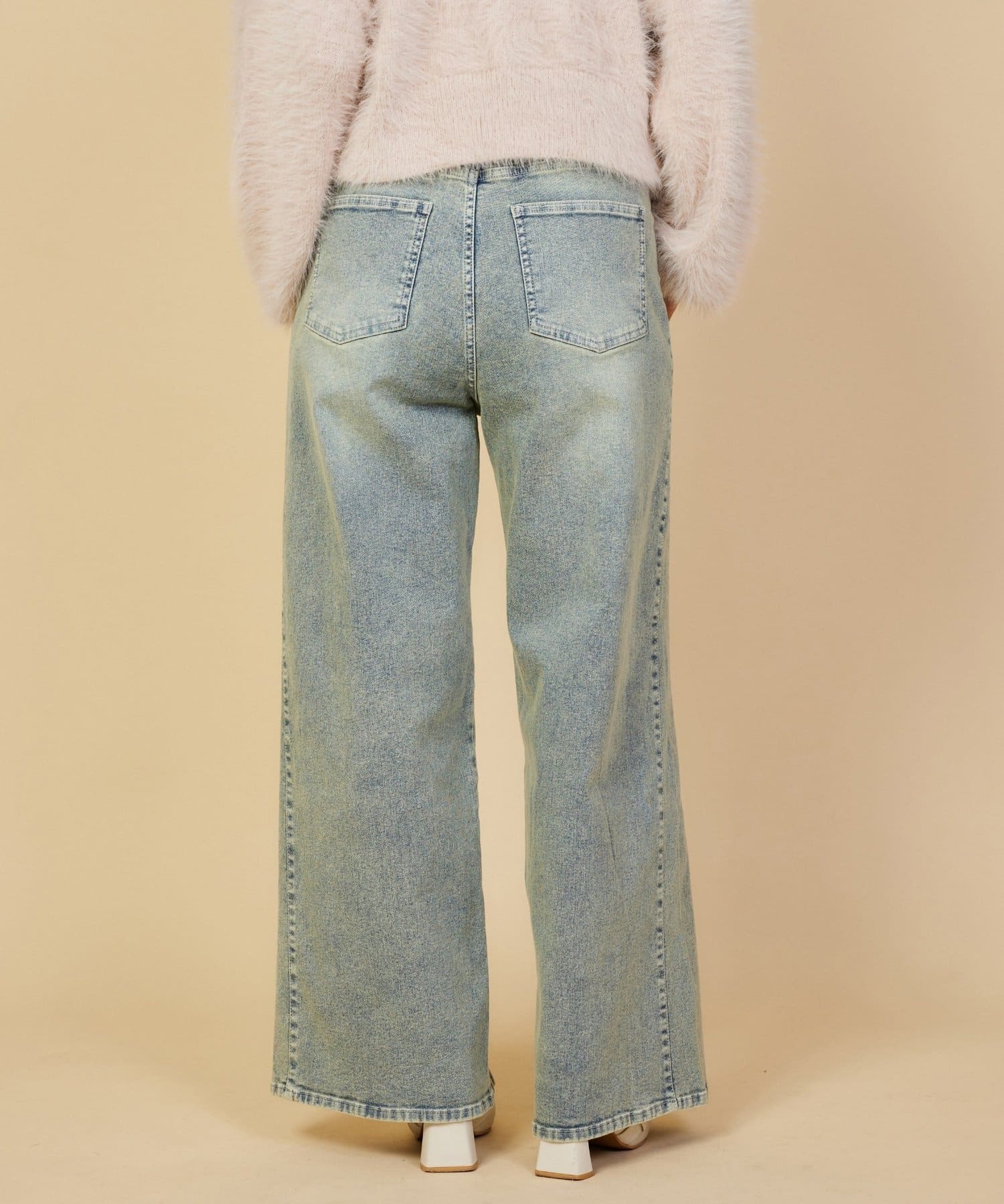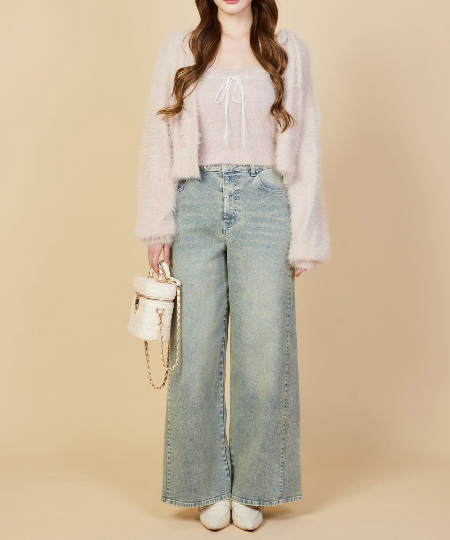全体的にゆったりとしたシルエットのワイドデニムは、華奢見せ効果も。