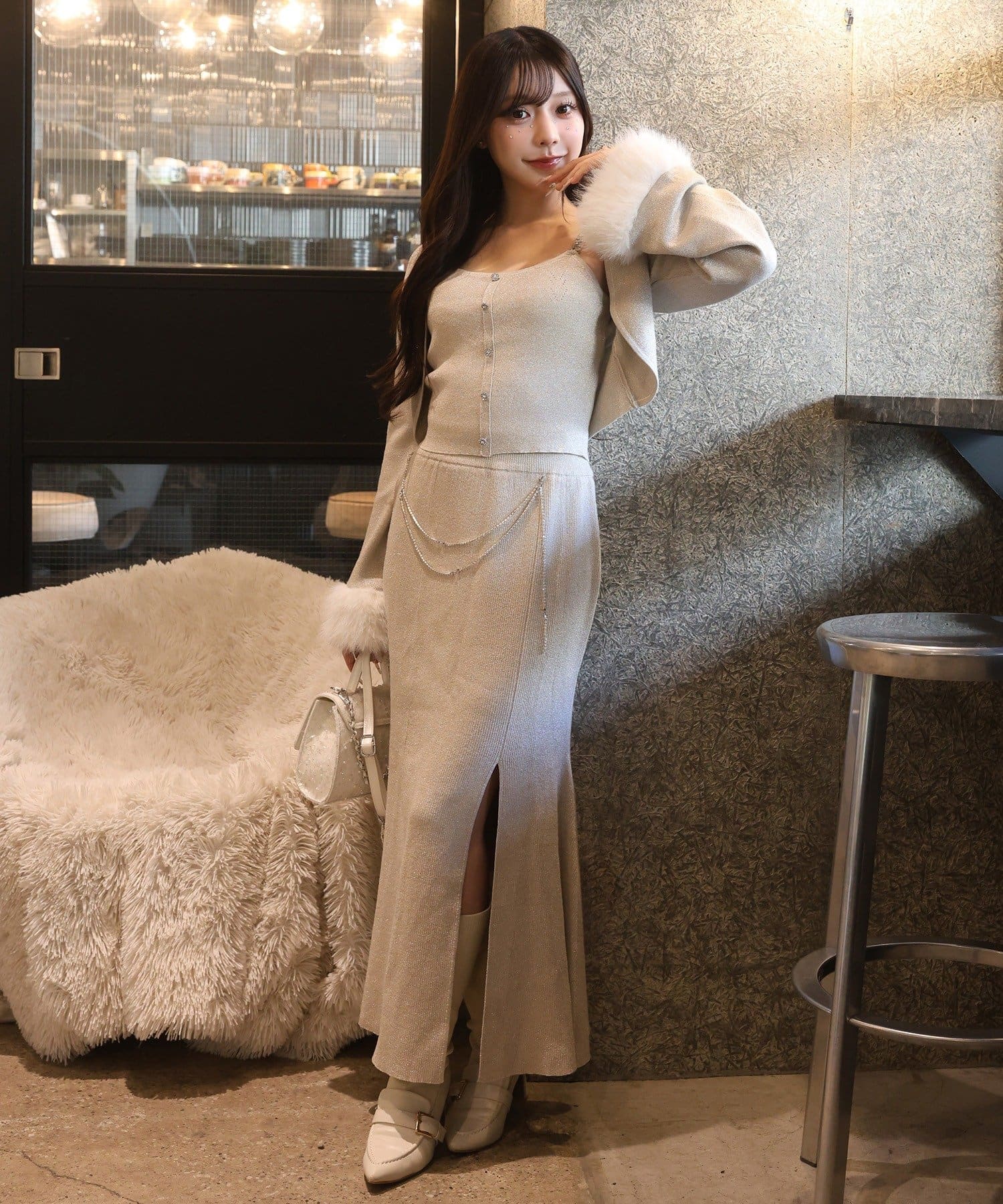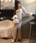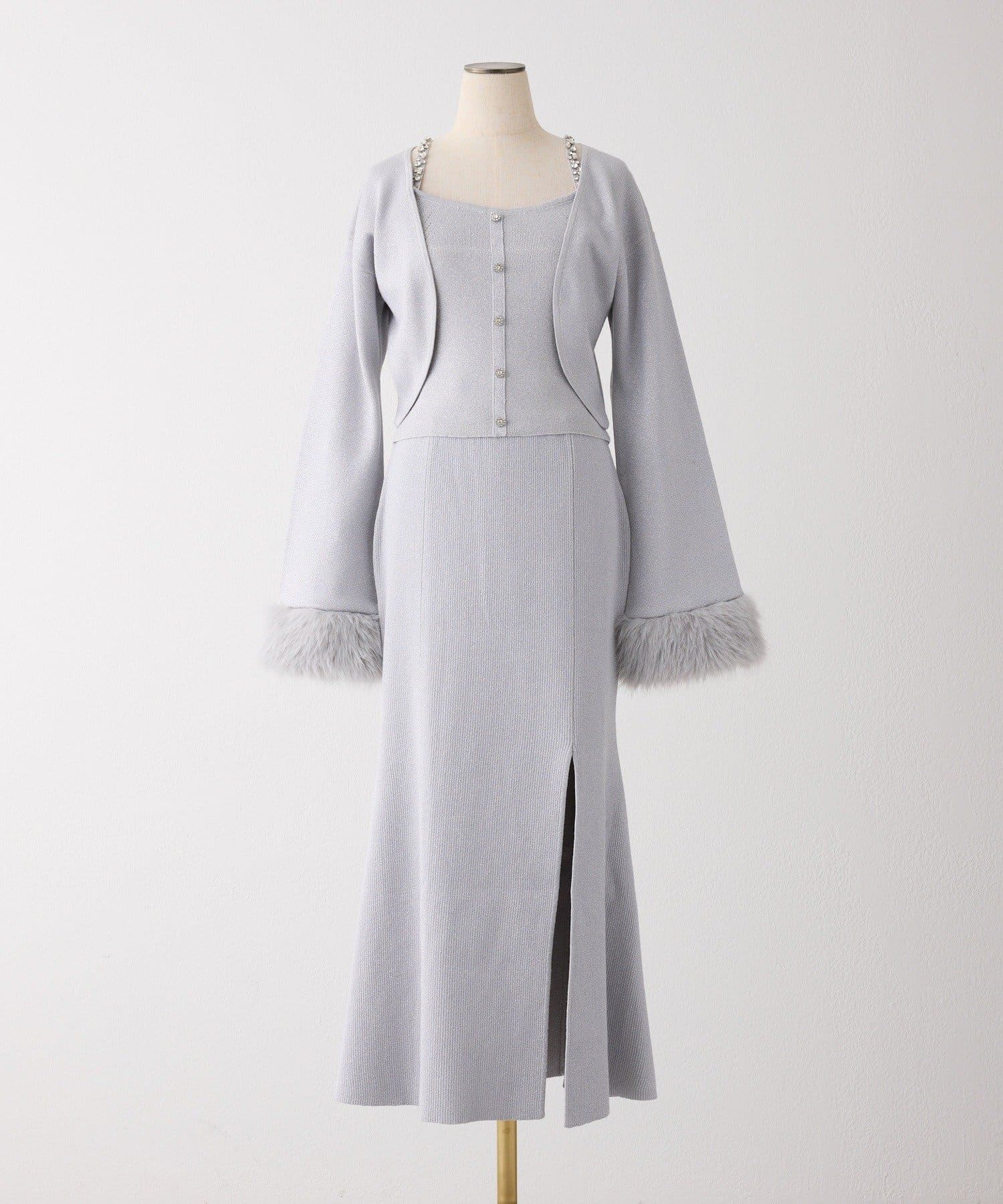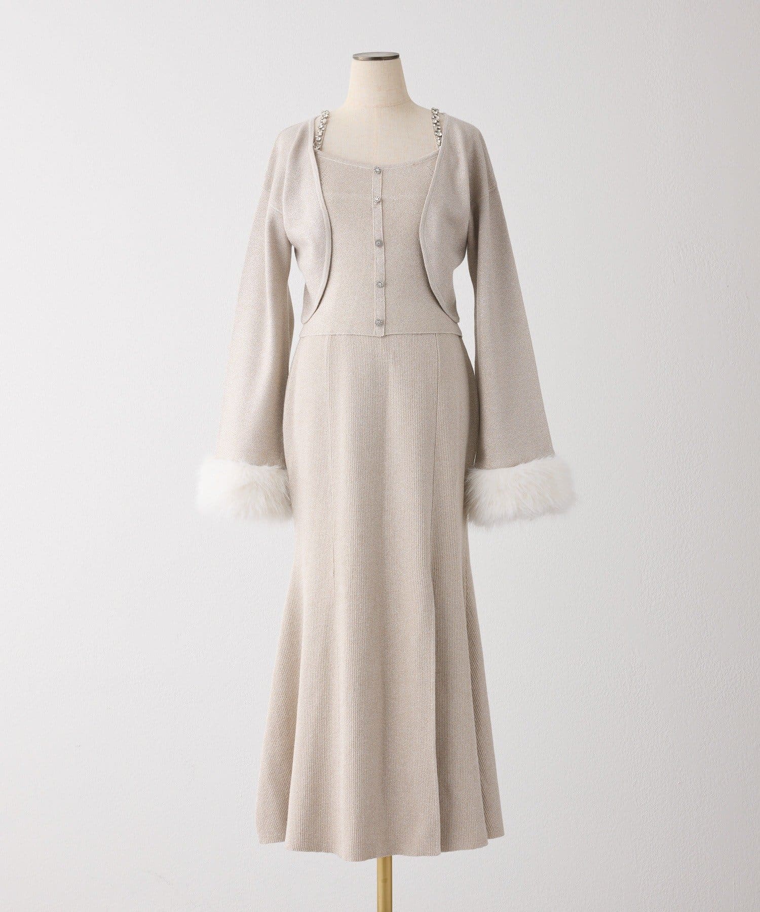 袖口にふわふわのファーがついたボレロがセットになった華やかアイテム。