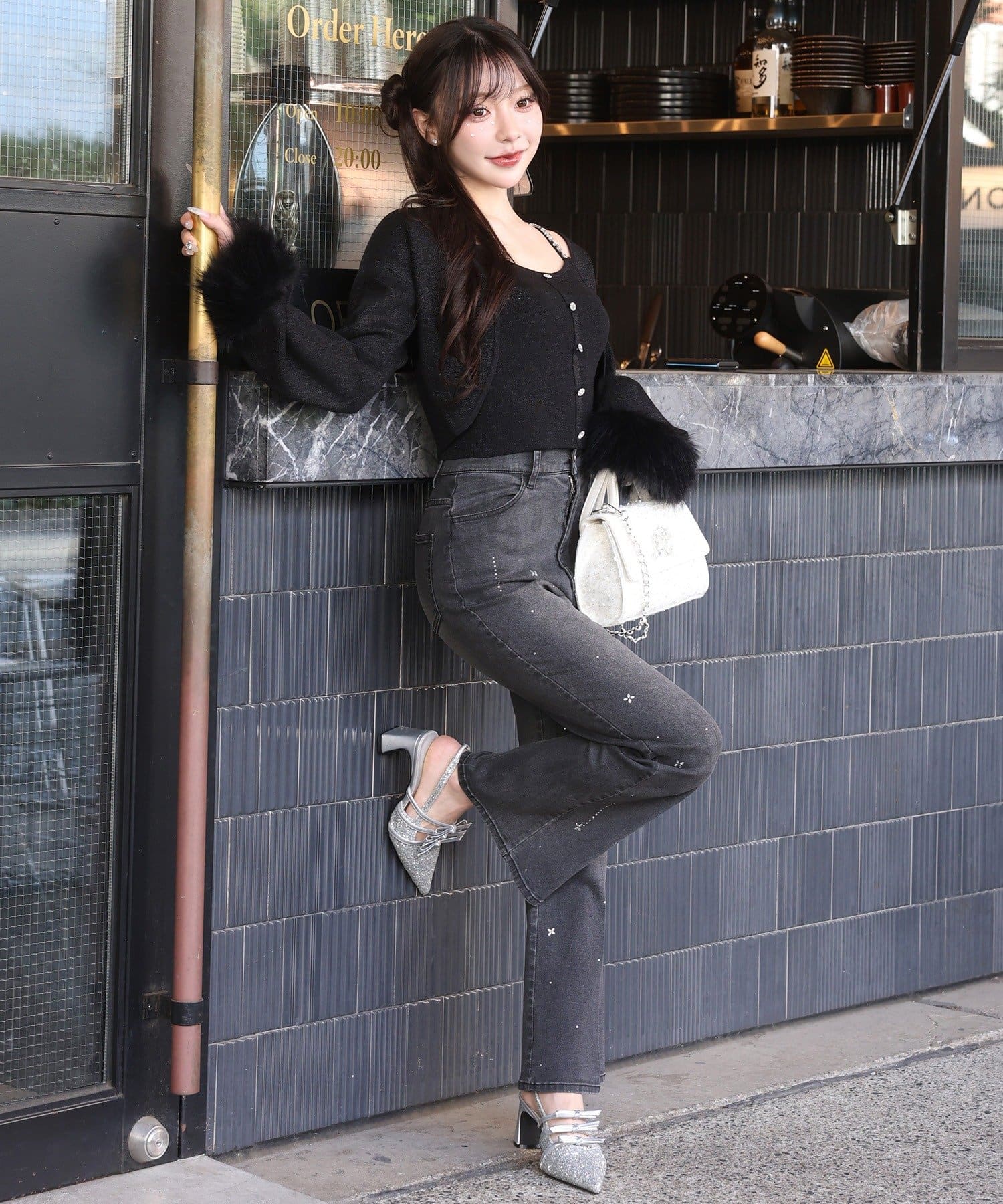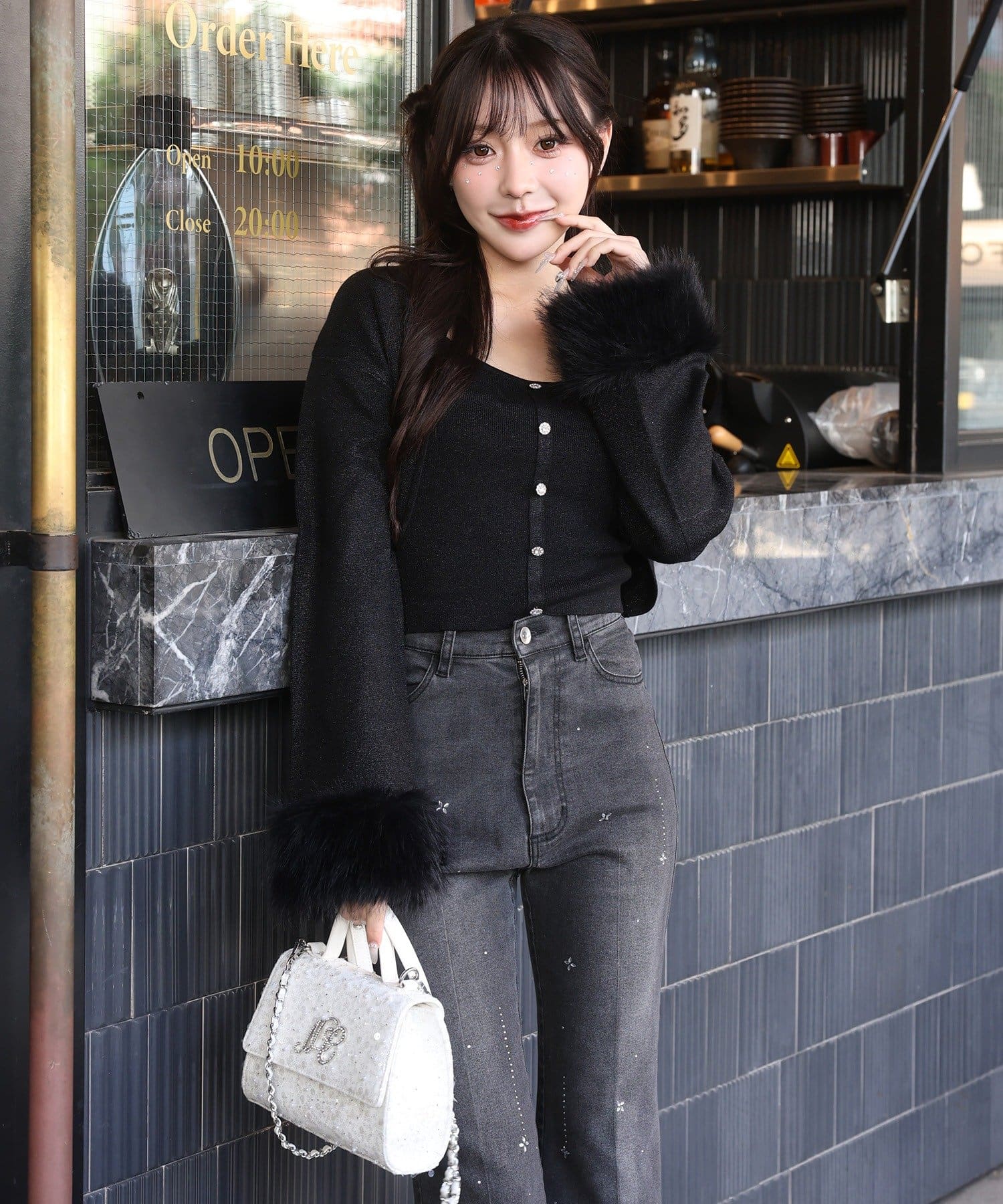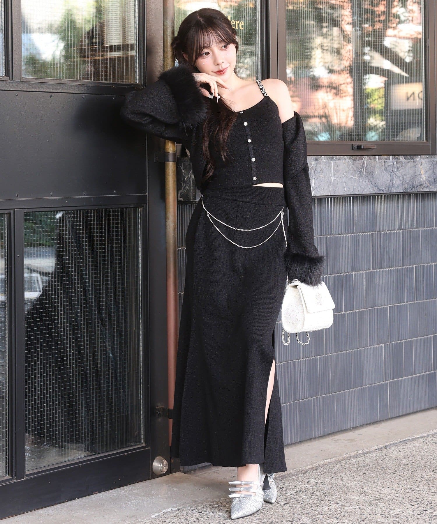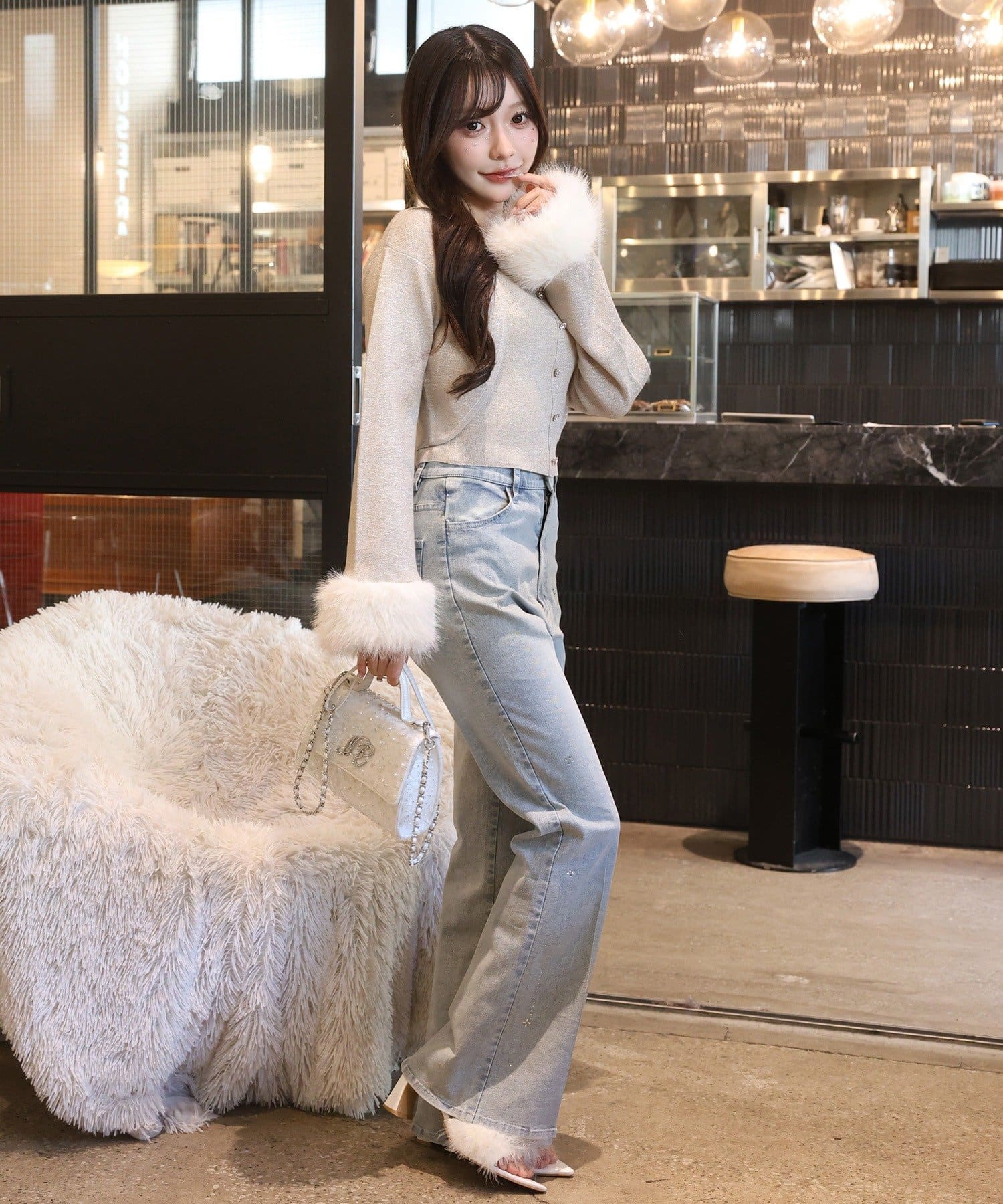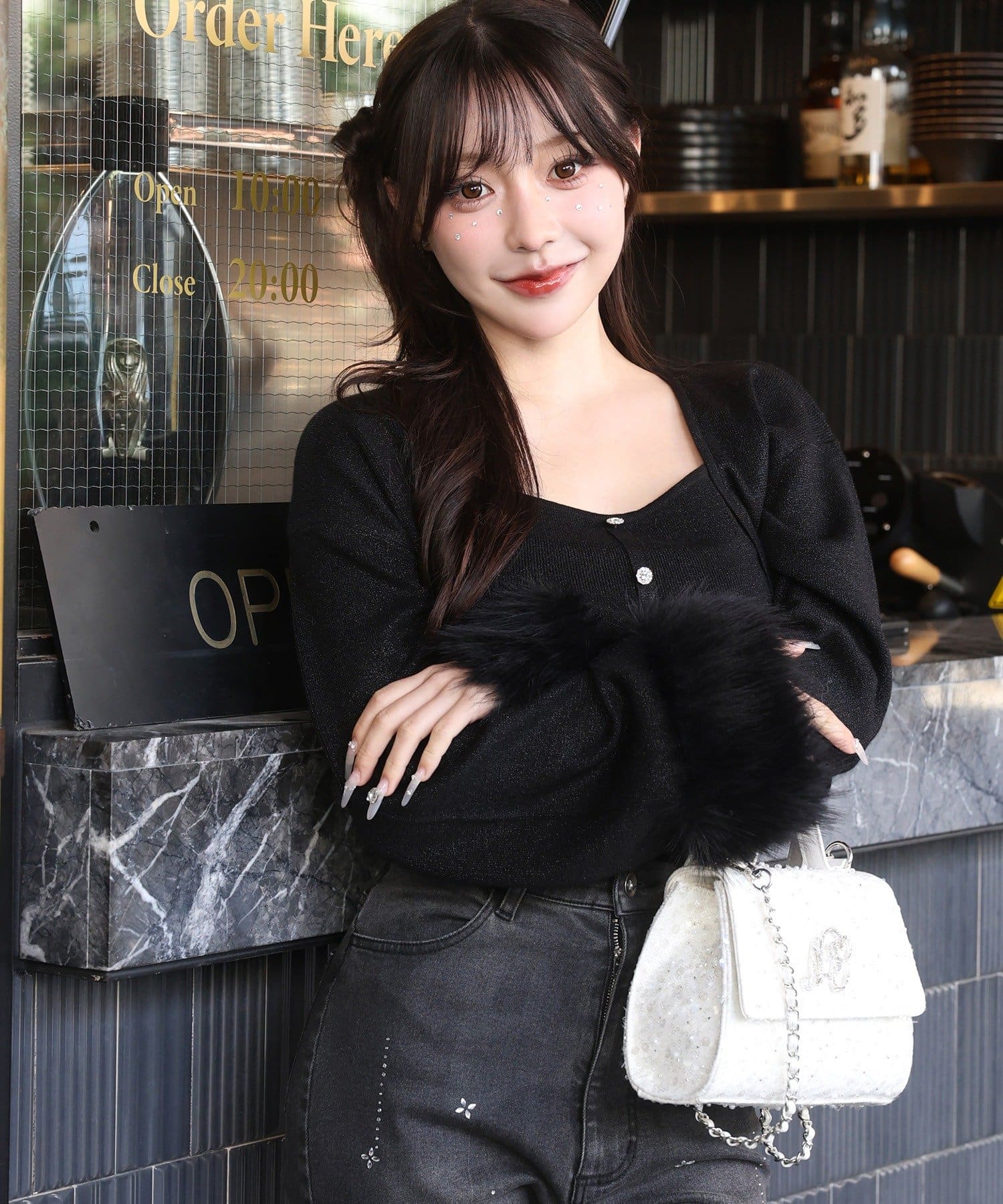 ファーバッグやビジューアクセを合わせて冬の華やかコーデに仕上げて◎
