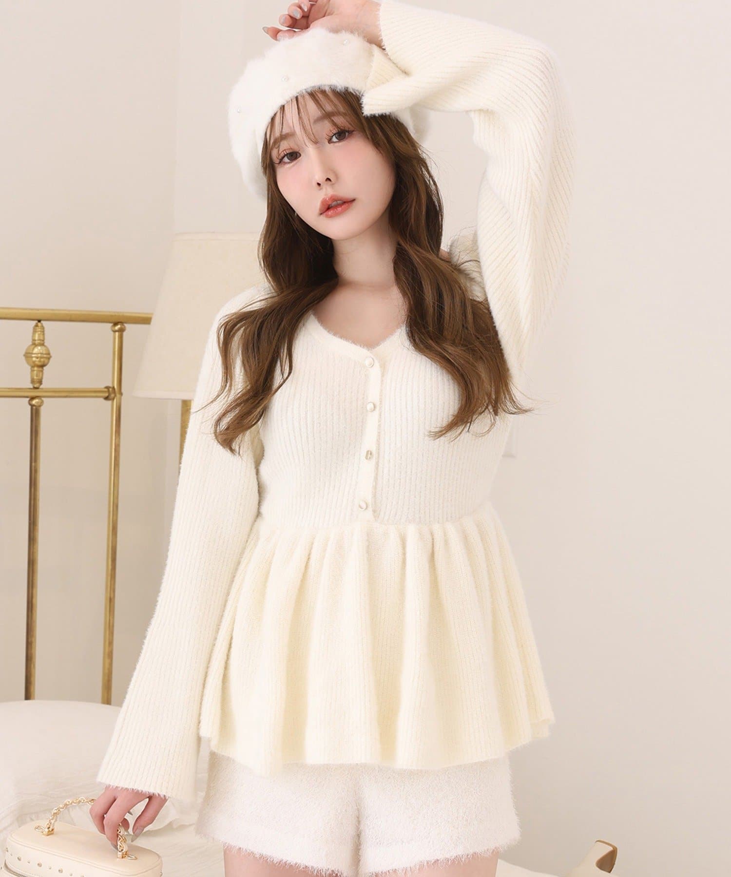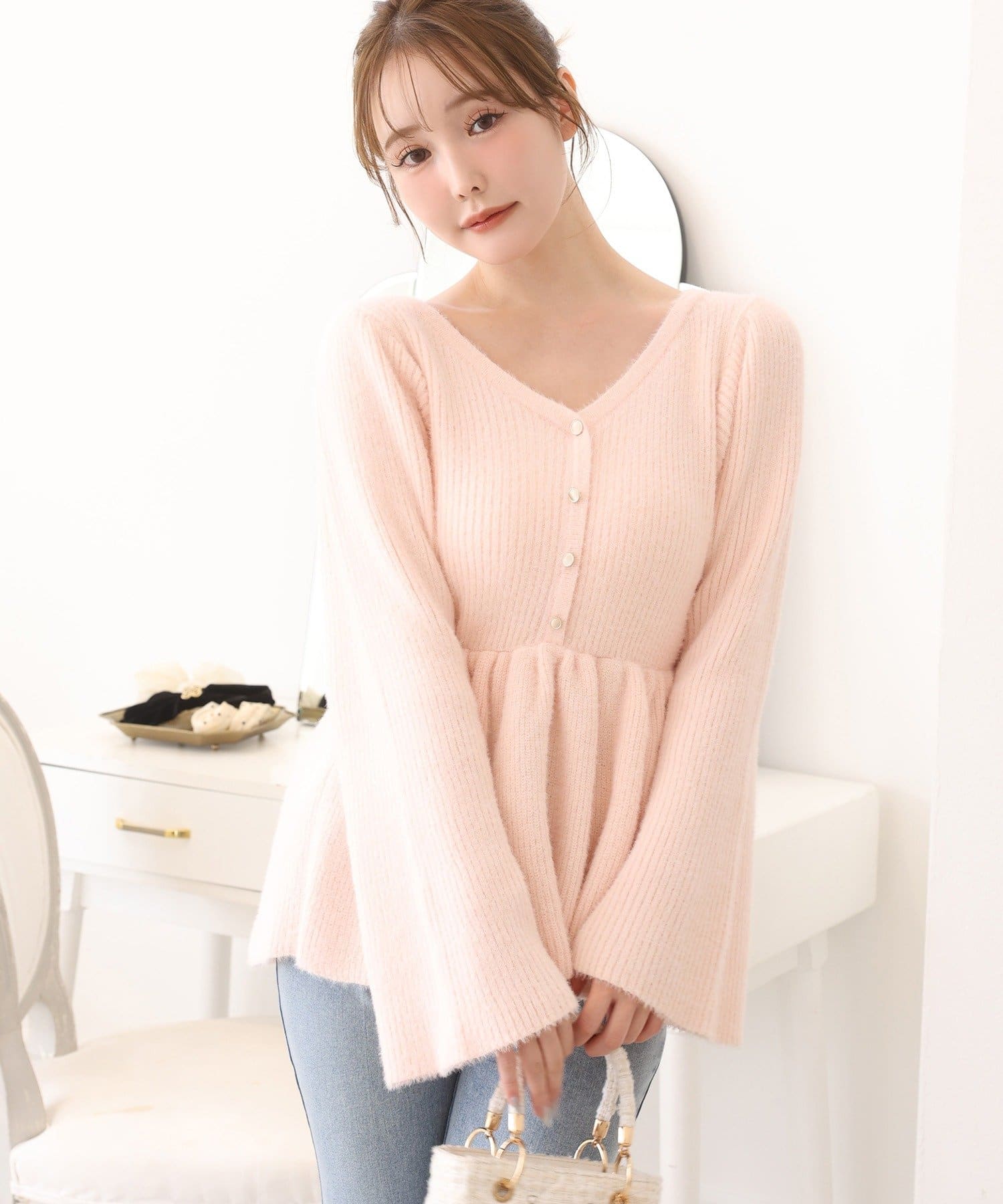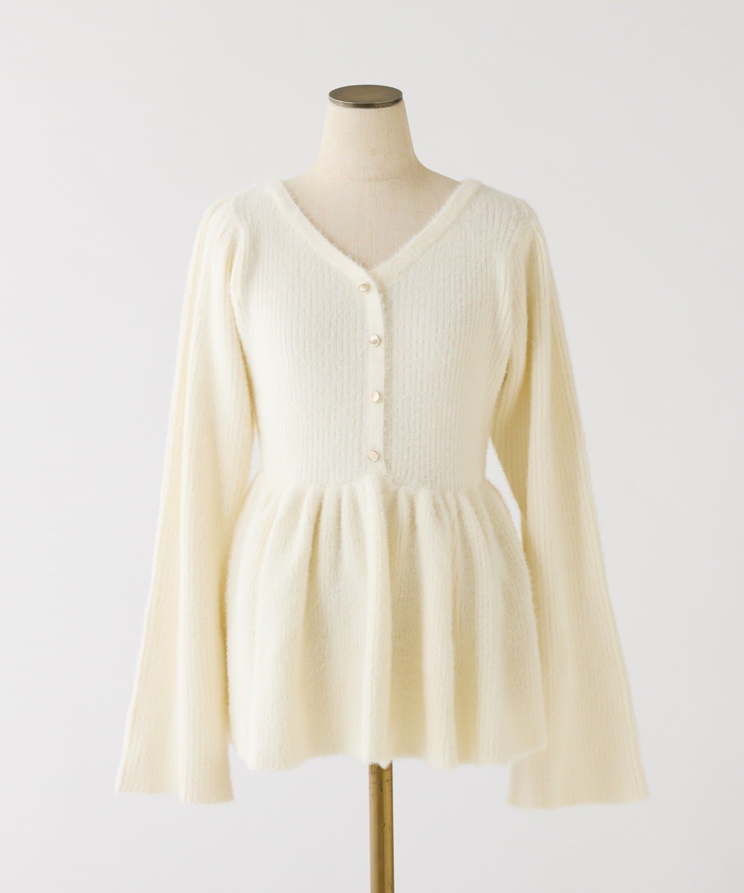 TOP > one after another NICE CLAUP > レディース > トップス > ニット/セーター > バックリボンフェザーペプラムニット
