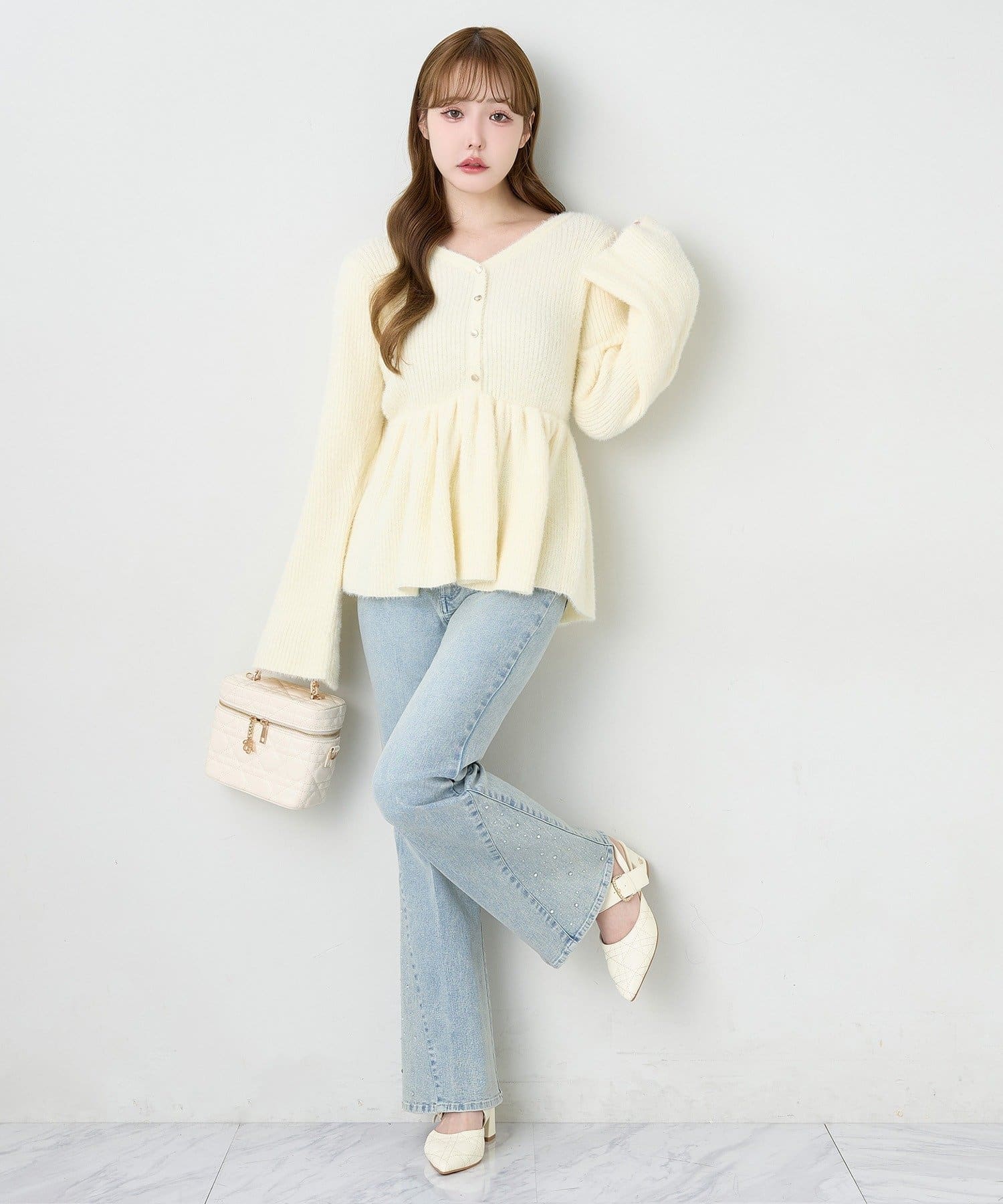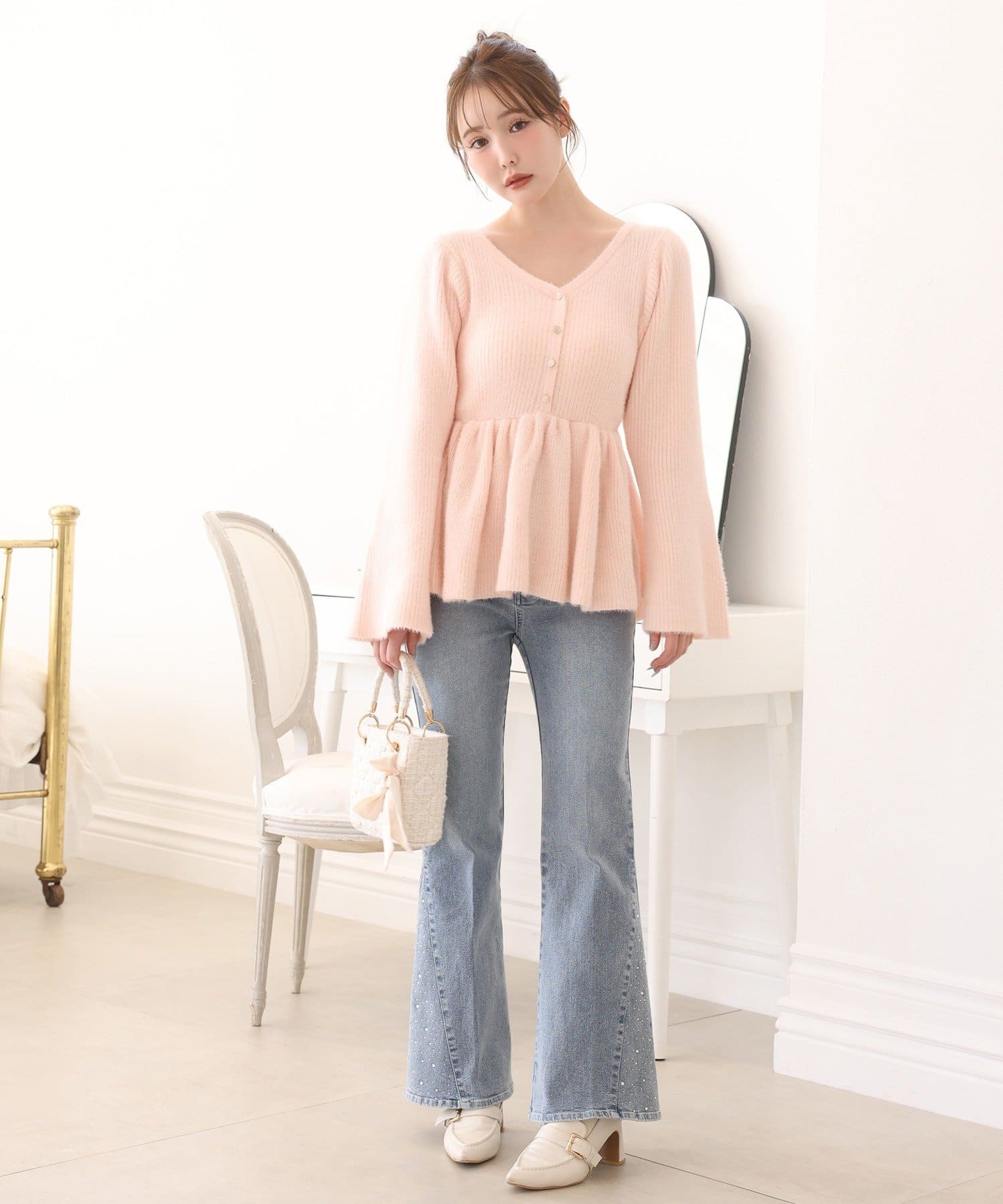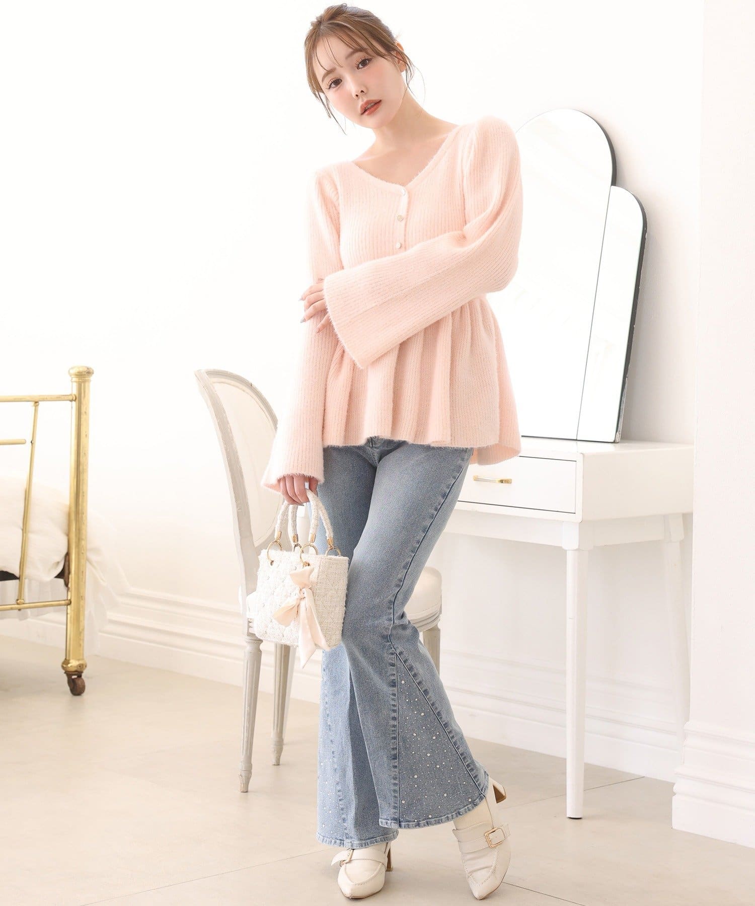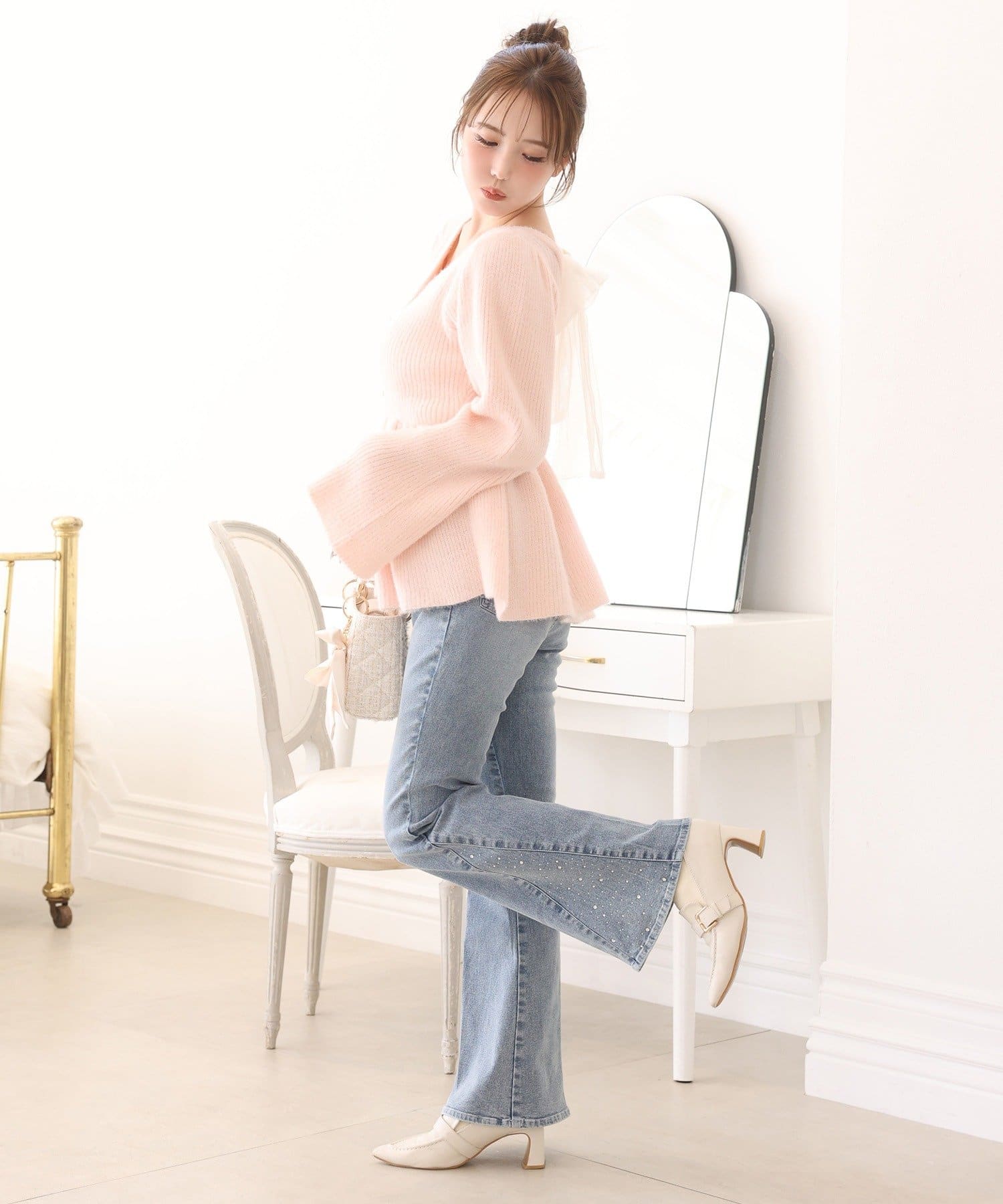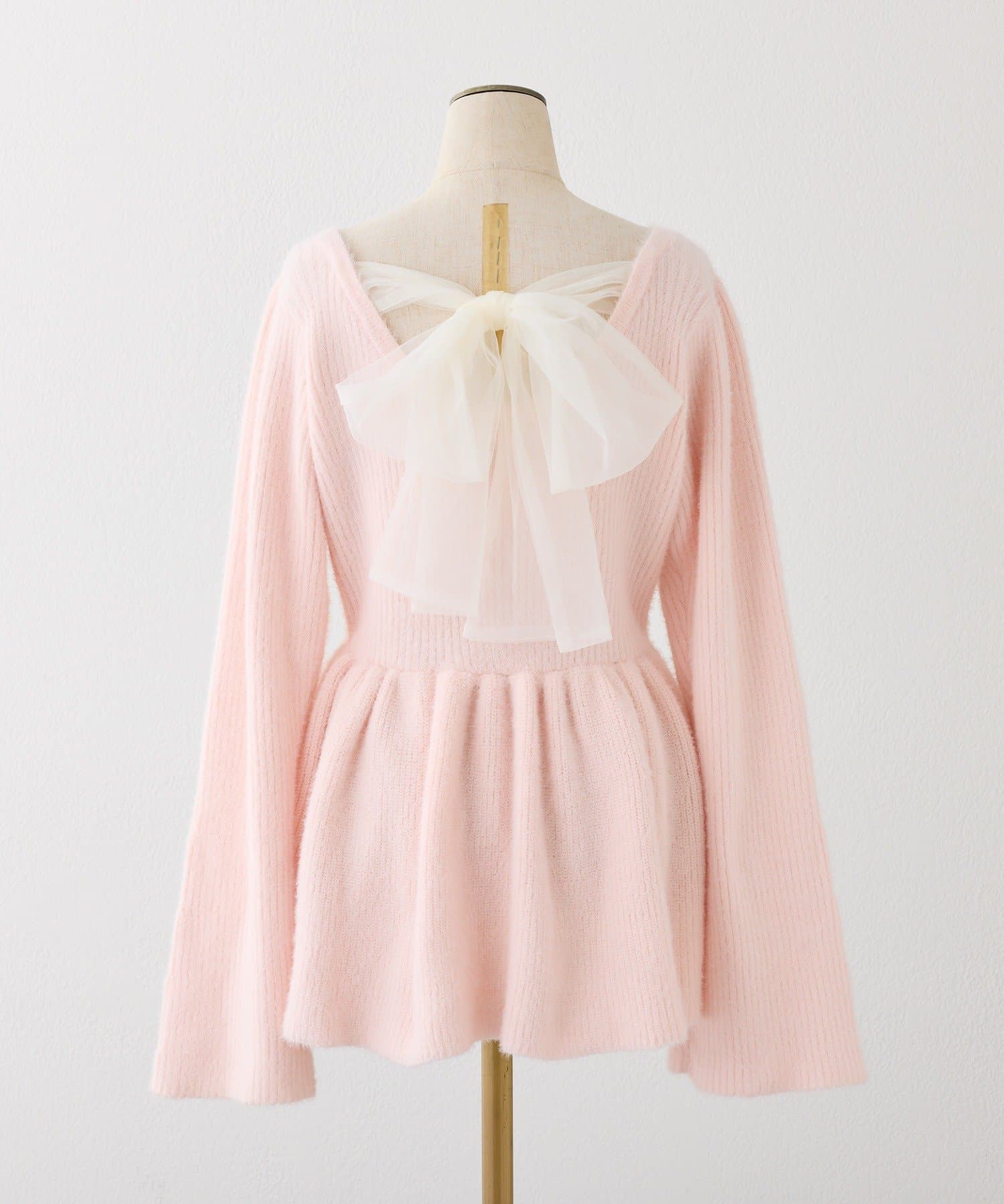 • one after another NICE CLAUP(ワンアフターアナザー ナイスクラップ) バックリボンフェザーペプラムニット