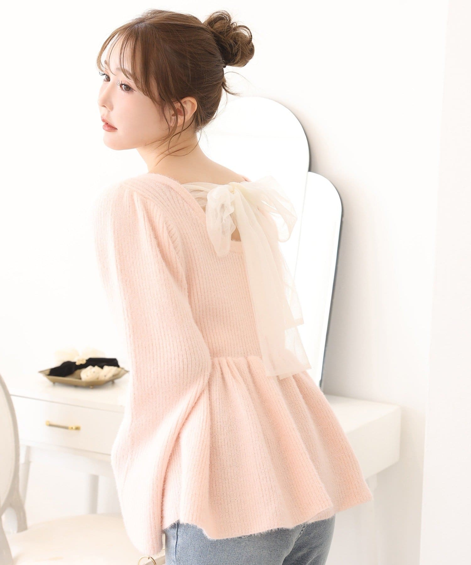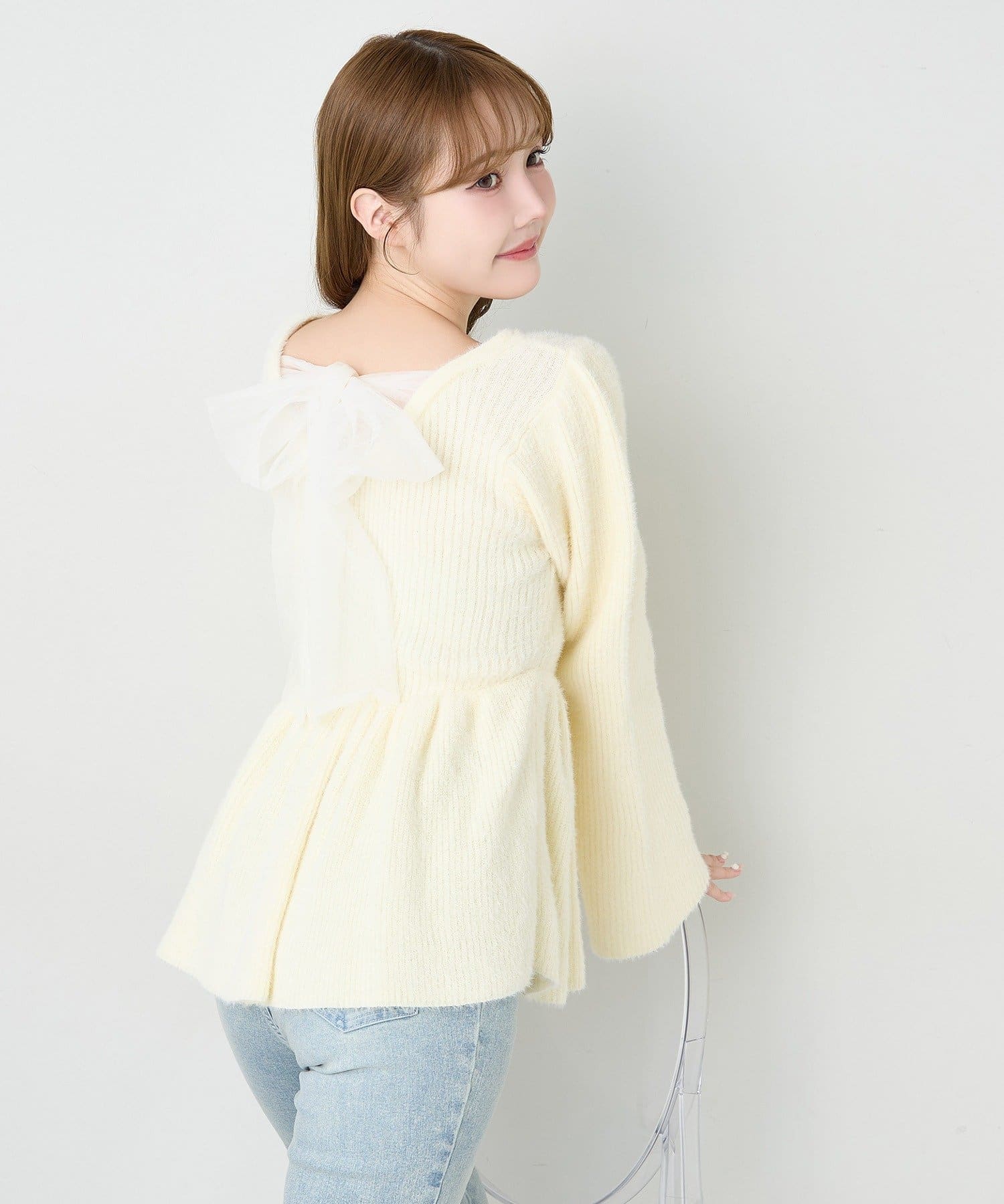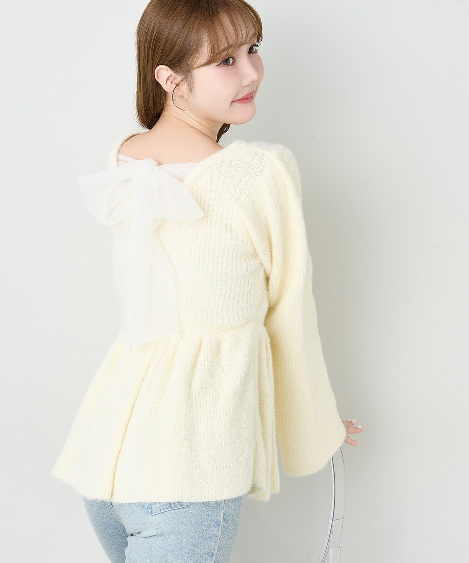 one after another NICE CLAUP(ワンアフターアナザー ナイスクラップ) バックリボンフェザーペプラムニット