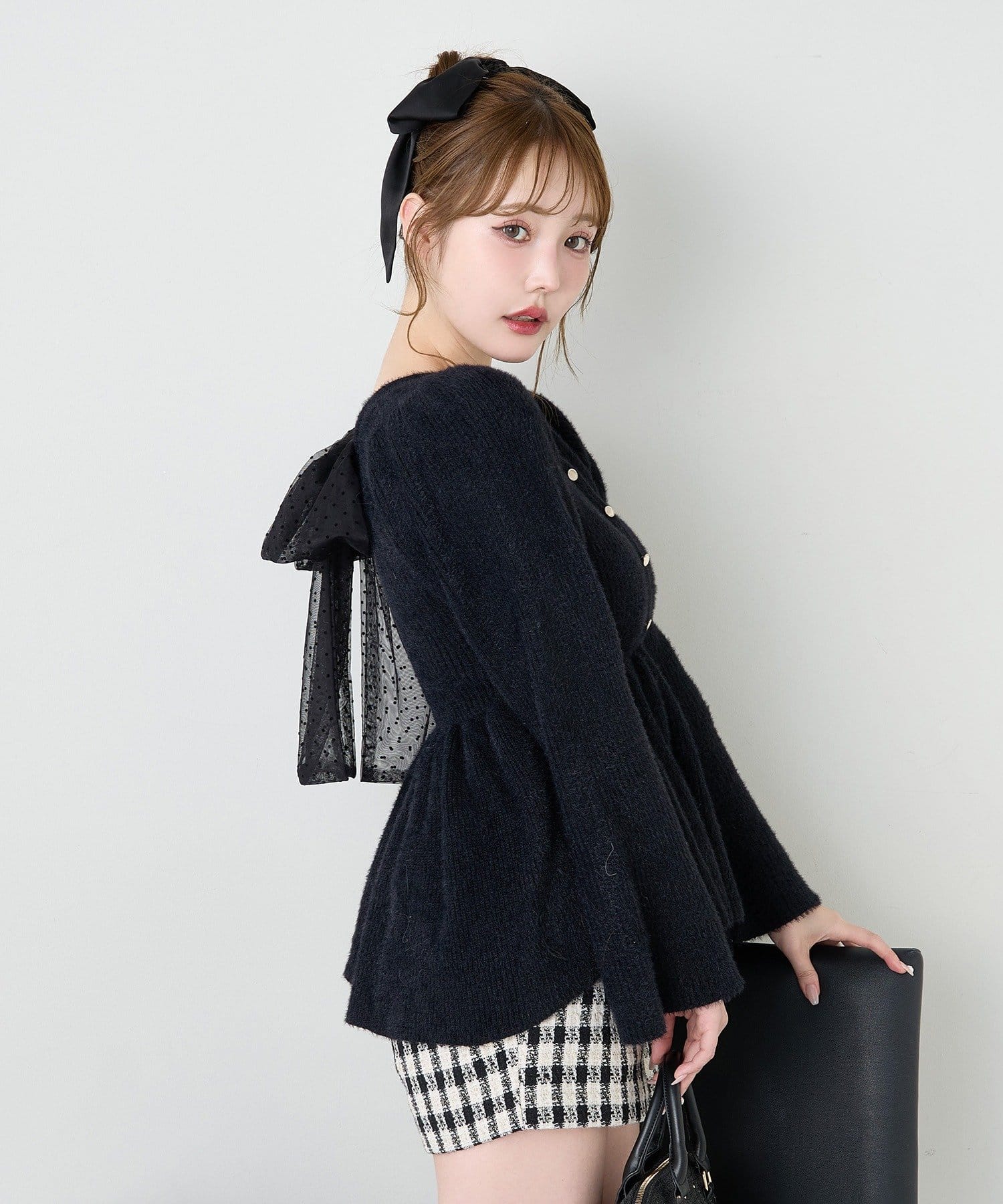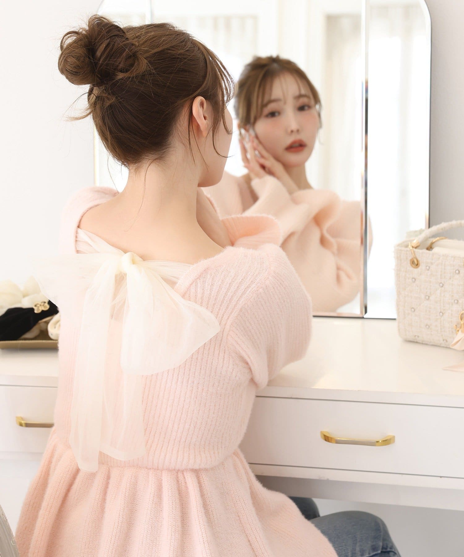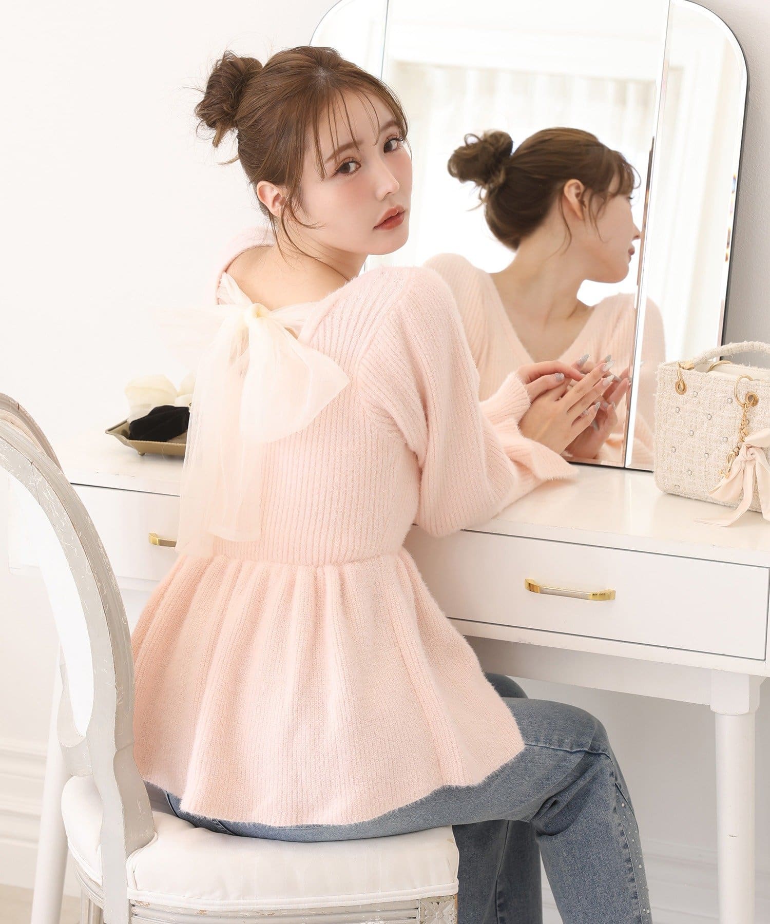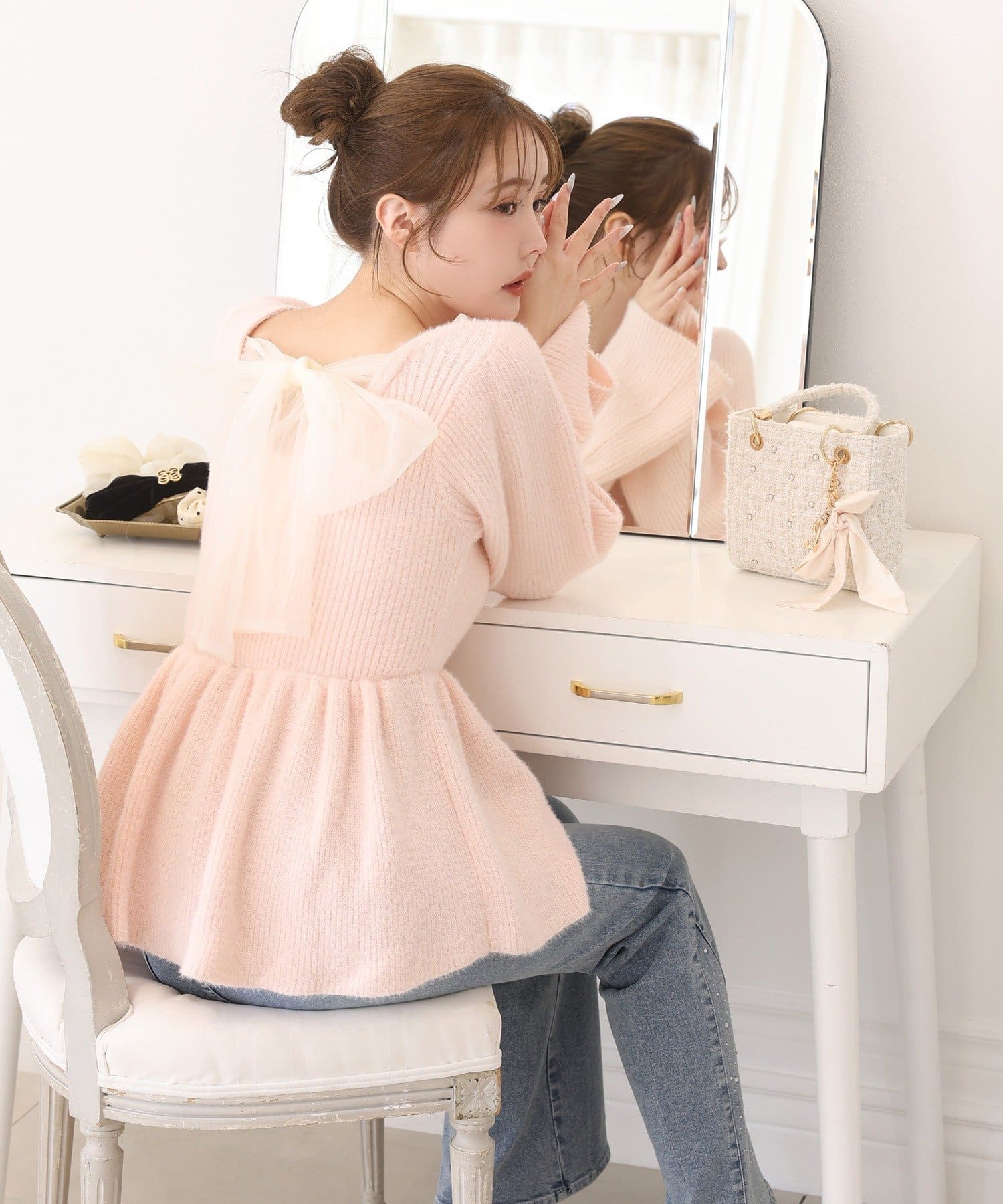 one after another NICE CLAUP(ワンアフターアナザー ナイスクラップ) バックリボンフェザーペプラムニット